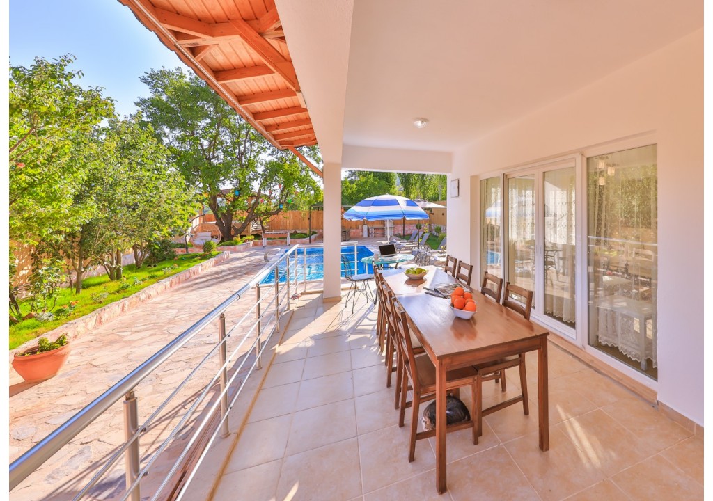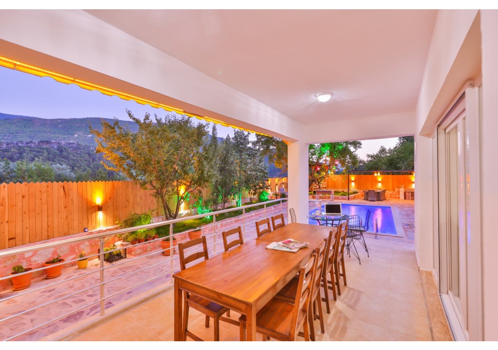 Detayları; Oturma grubu, Uydu TV (LCD), Klima, 10 kişilik yemek masası, Havuz terasına çıkış,
