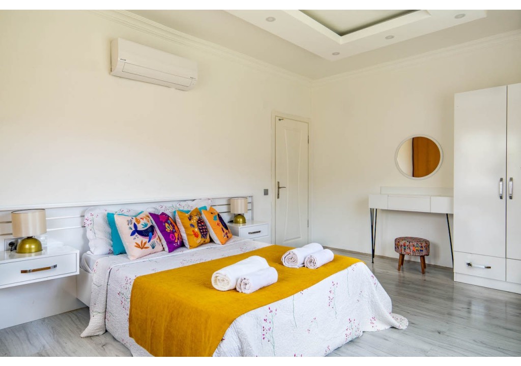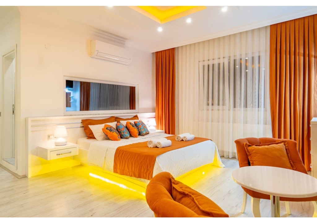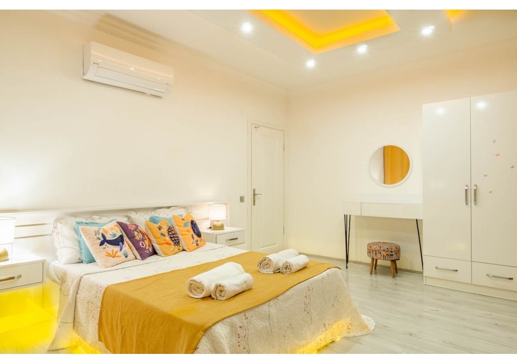 Detayları; Çift kişilik yatak, makyaj masası, komidin, klima, elbise dolabı bulunmaktadır.