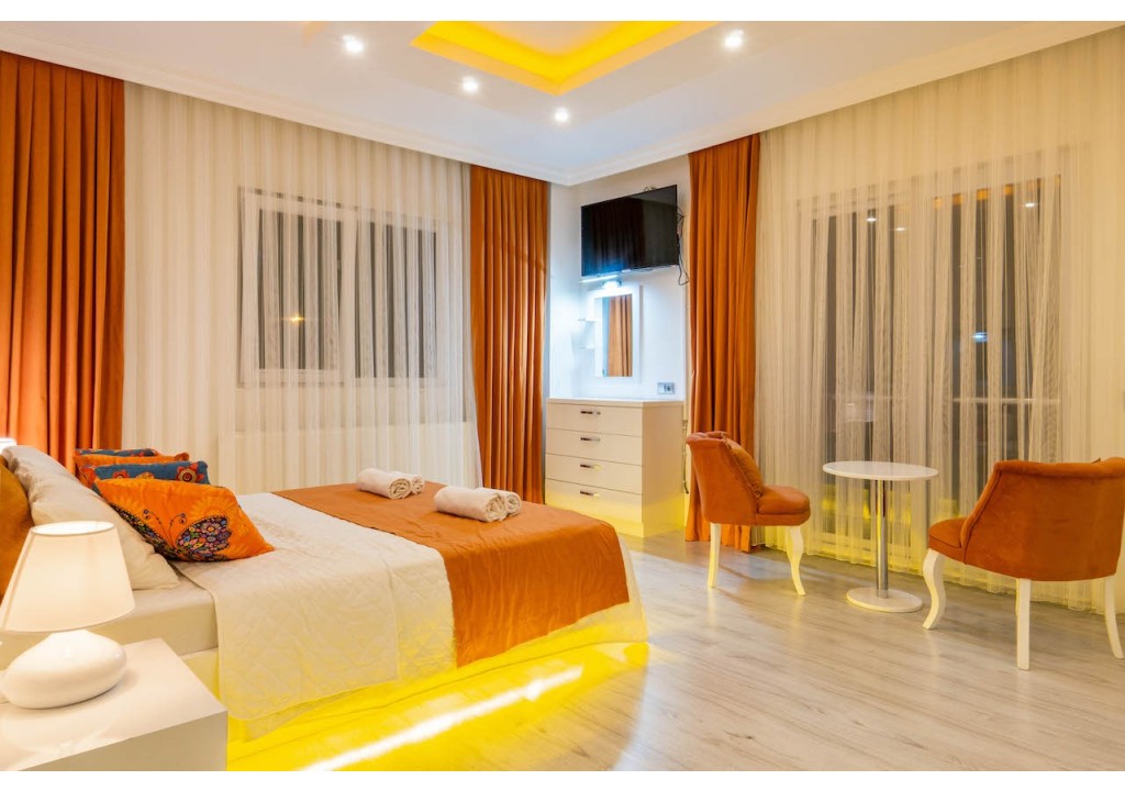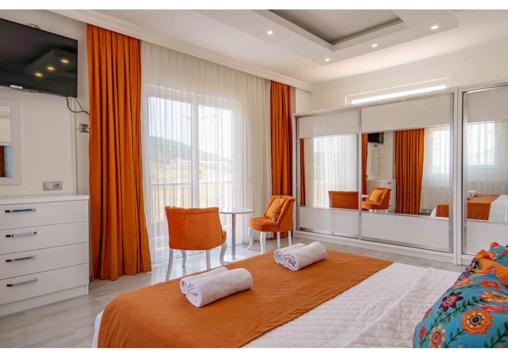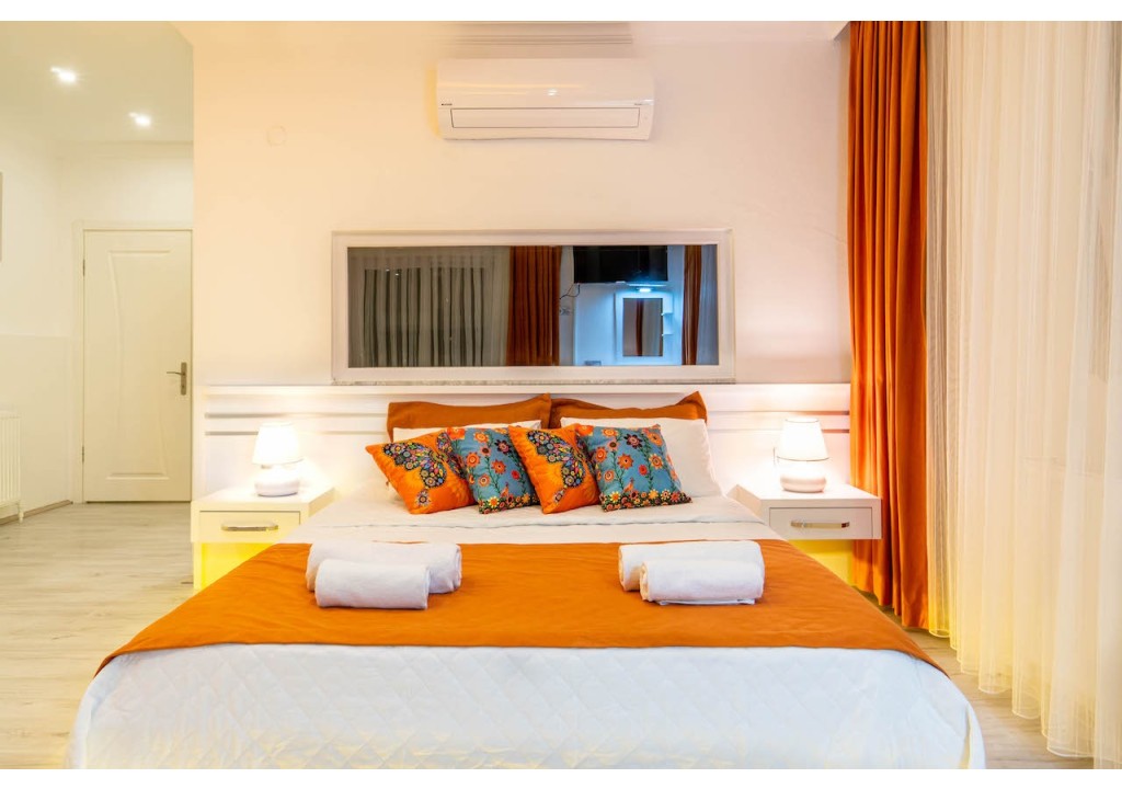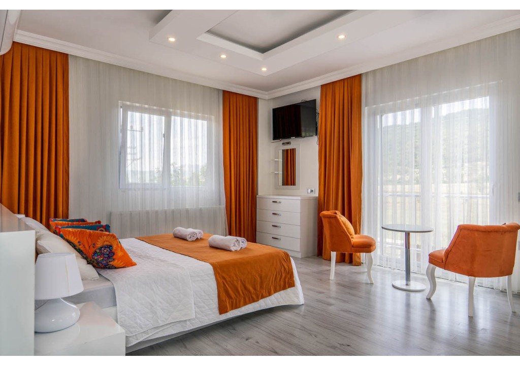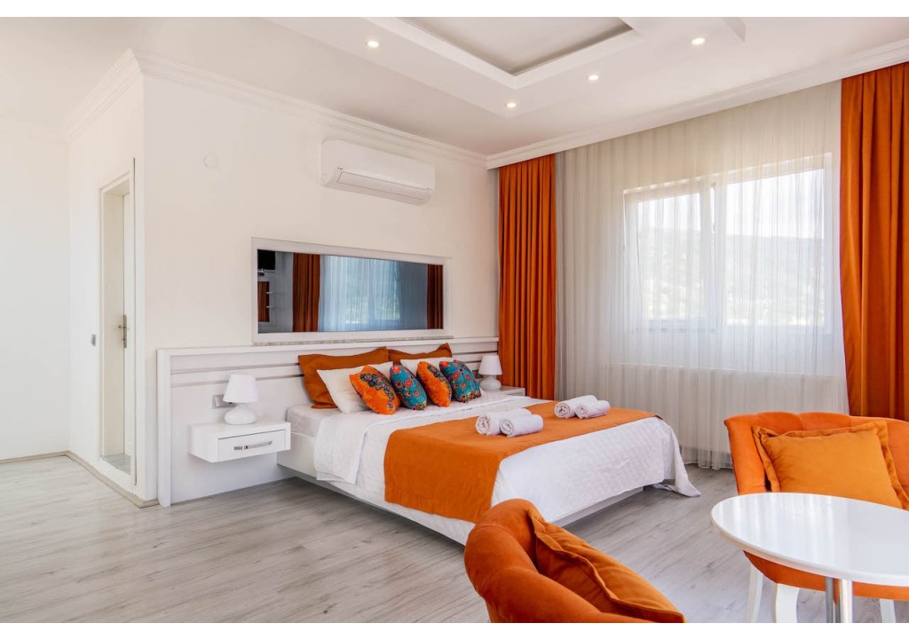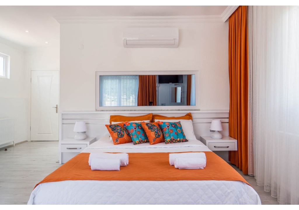 Detayları; Çift kişilik yatak, makyaj masası, komidin, klima, elbise dolabı, banyo ve tuvalet bulunmaktadır.