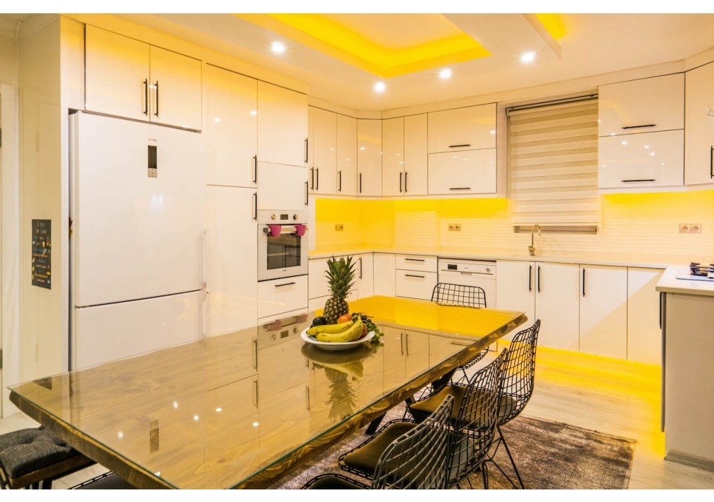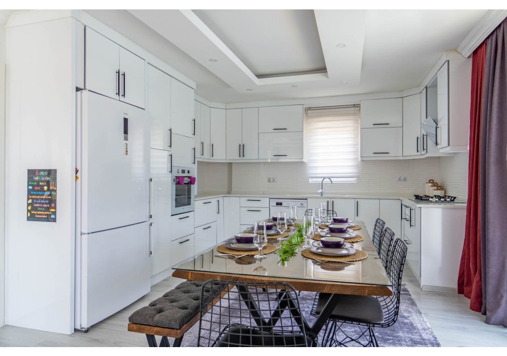 Detayları; Buzdolabı, Bulaşık makinesi, Fırın 4’lü Ocak (ankastre), Mikrodalga fırın, Elektrikli su ısıtıcı, 4 kişilik yemek takımı, Tava, Tencereler, Çatal bıçak vb.
