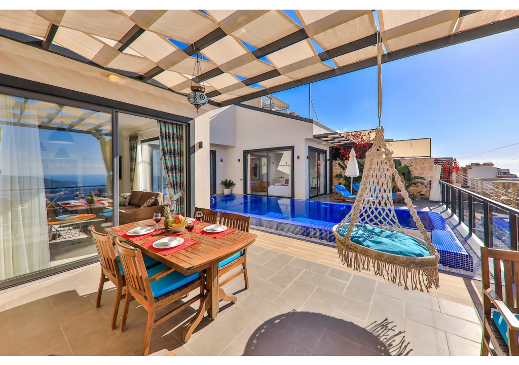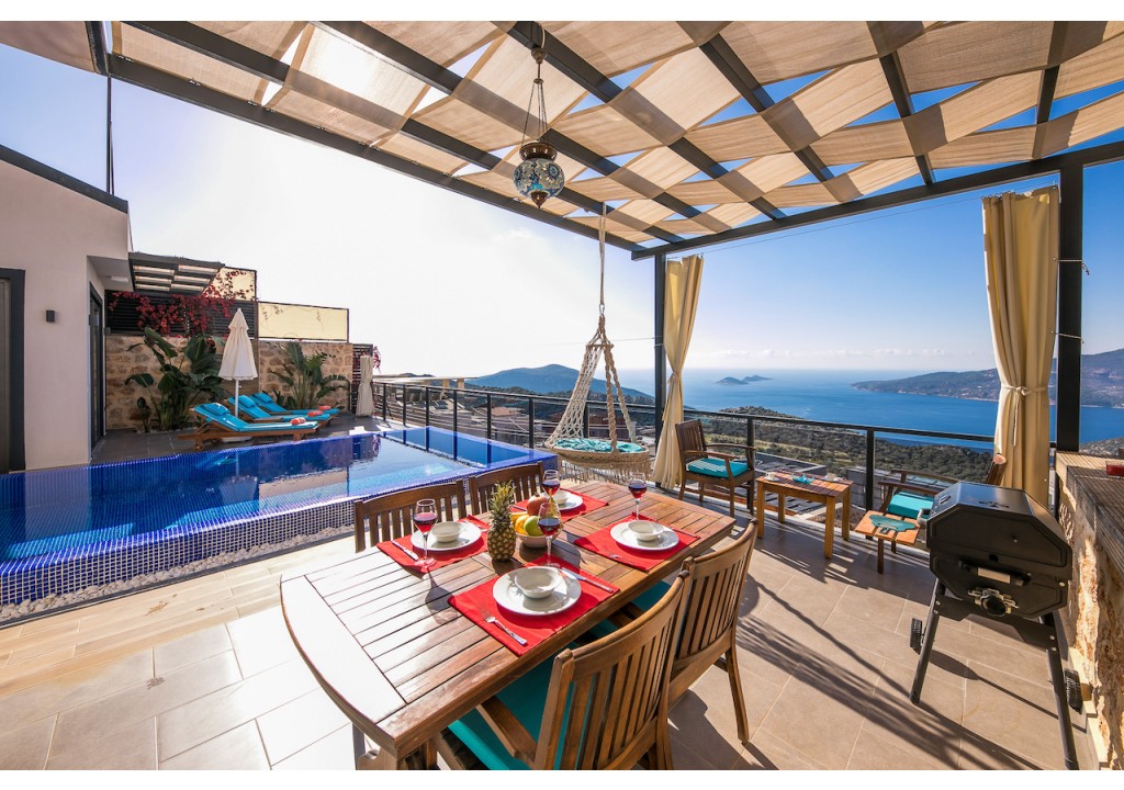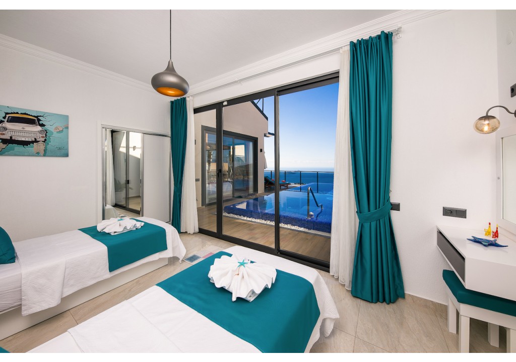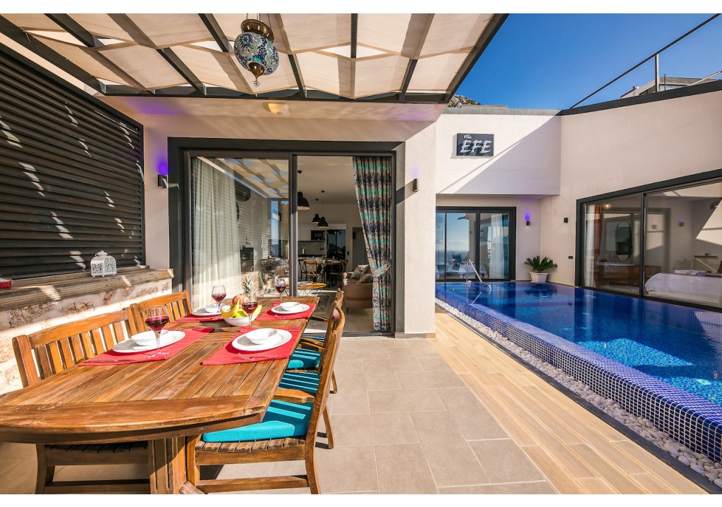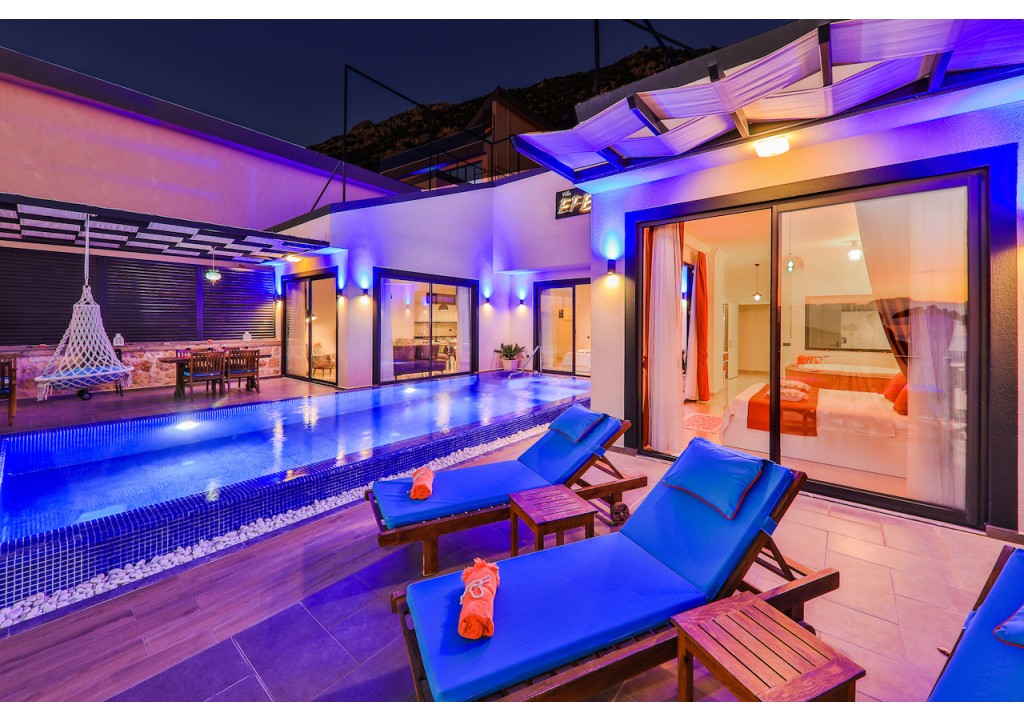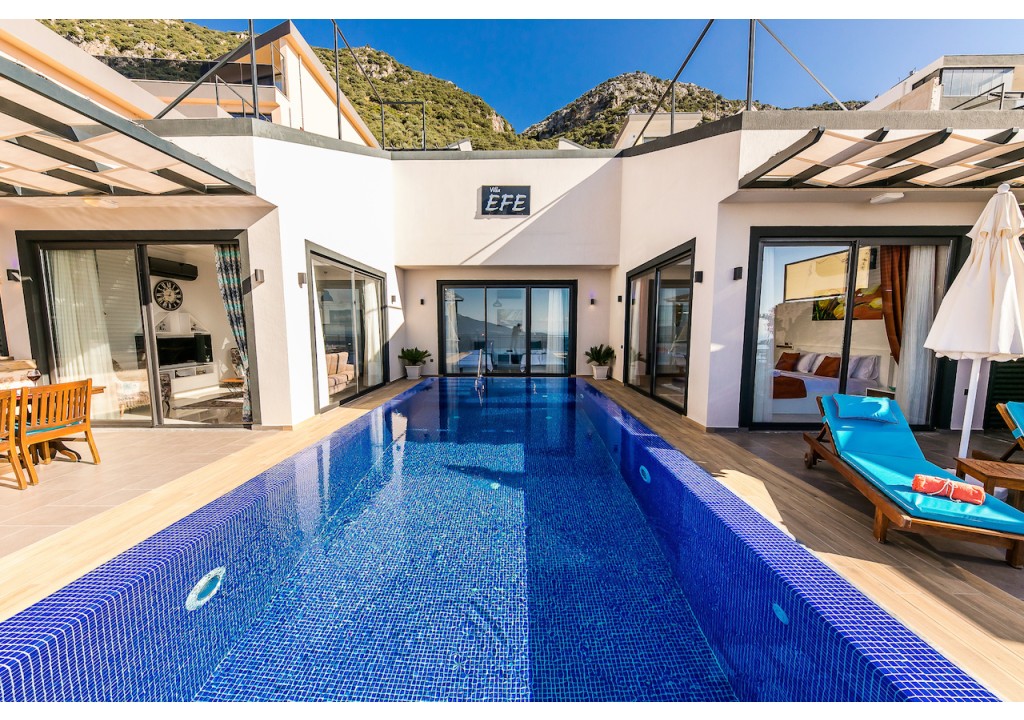 Villa Efe, Kalkan’ın Kördere mevkiinde yer almakta olup, deniz ve doğa manzarasına hakim kiralık villalarımız arasında bulunmaktadır. Modern ve konforlu bir şekilde dekore edilen yazlık villamızda 2 adet yatak odası yer almakta ve toplamda 4 kişiye kadar konaklama imkânı sunmaktadır.