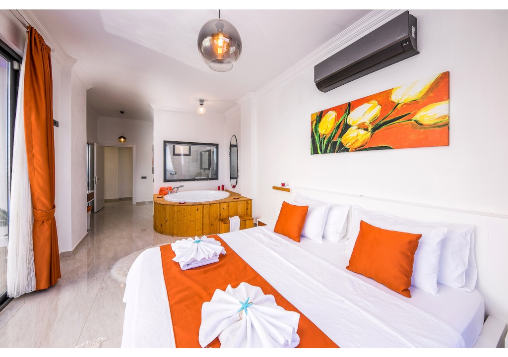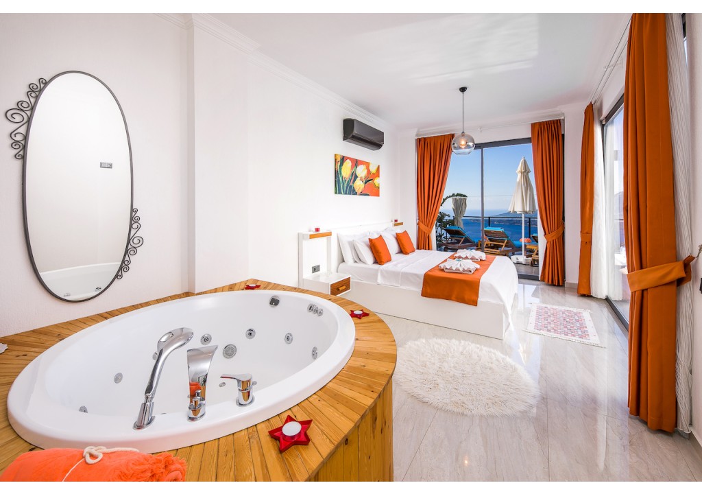 Detayları; Çift kişilik yatak, makyaj masası, komodin, klima, elbise dolabı, jakuzi, banyo ve tuvalet bulunmaktadır.