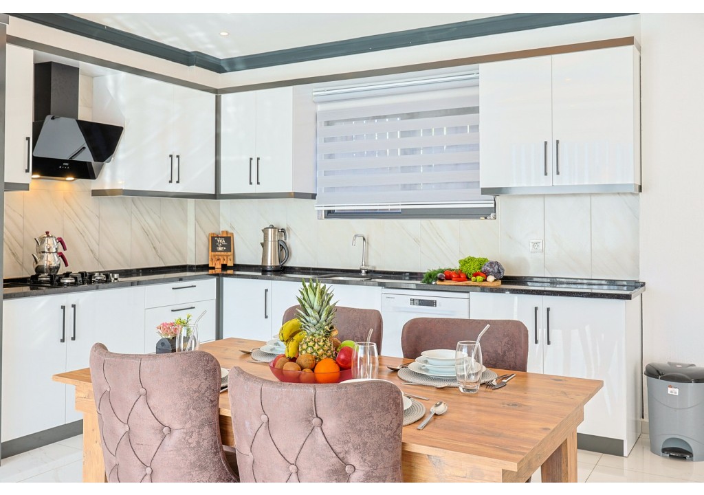 Detayları; Buz dolabı, Bulaşık makinesi, Fırın 4’lü Ocak (ankastre), Mikrodalga fırın, Elektrikli su ısıtıcı, 4 kişilik yemek takımı, Tava, Tencereler, Çatal bıçak vb.