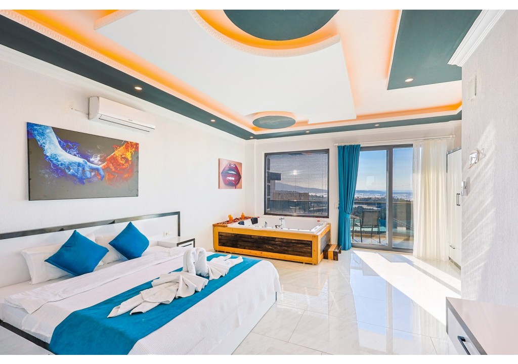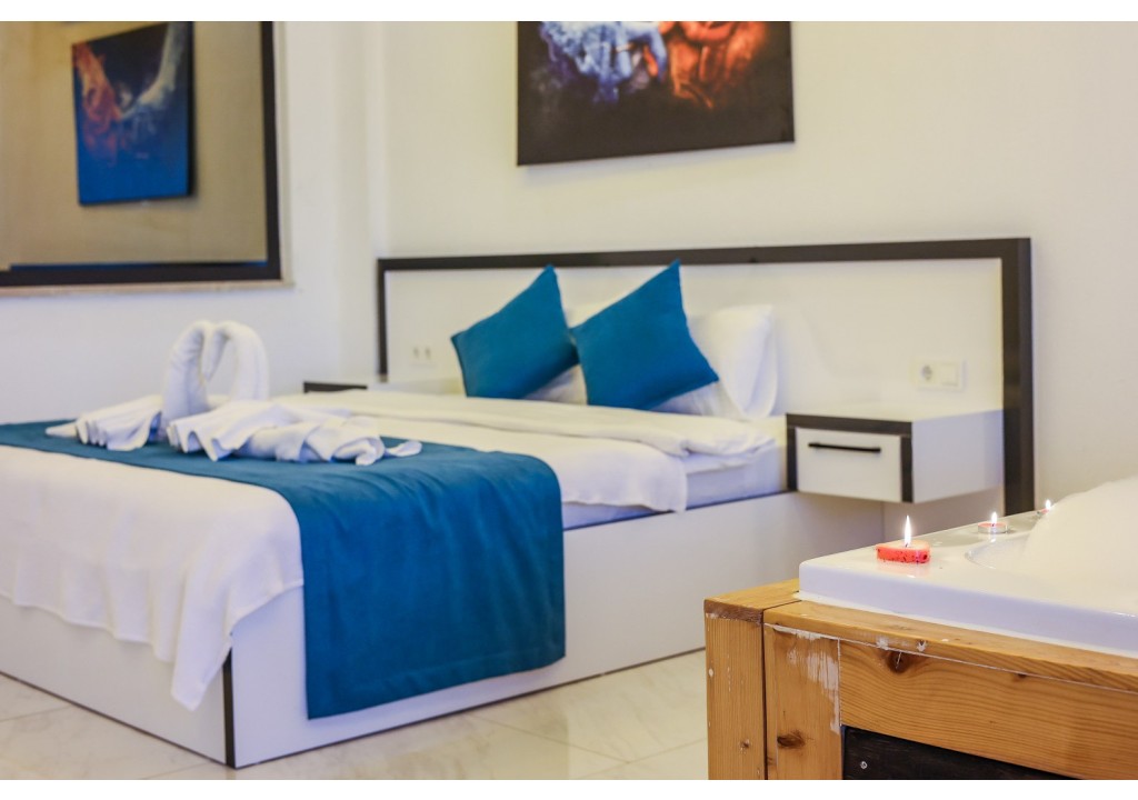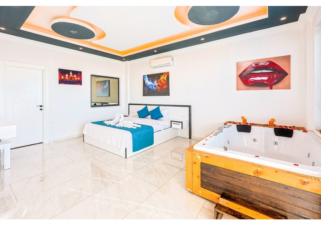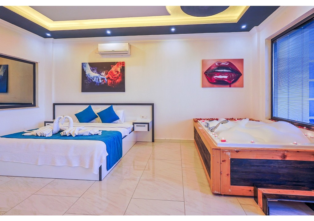 Detayları; Çift kişilik yatak, makyaj masası, komidin, klima, elbise dolabı, jakuzi, banyo ve tuvalet bulunmaktadır.