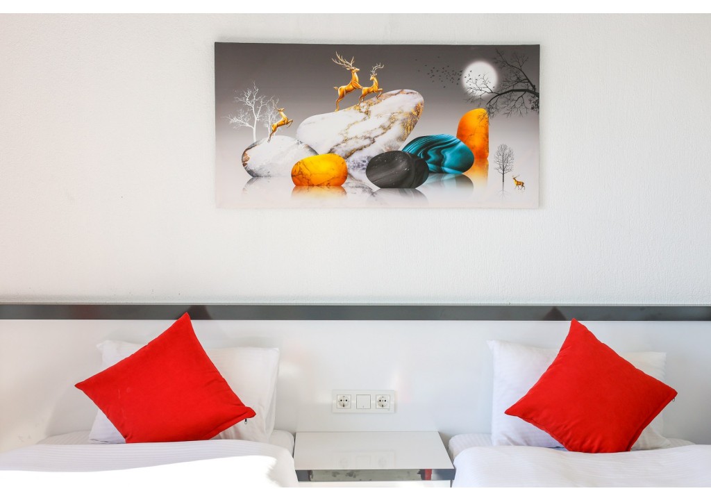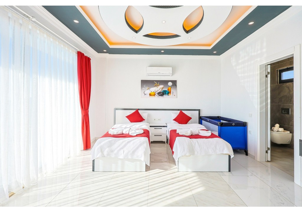 Detayları; İki adet tek kişilik yatak, makyaj masası, komidin, klima, elbise dolabı, banyo ve tuvalet bulunmaktadır.