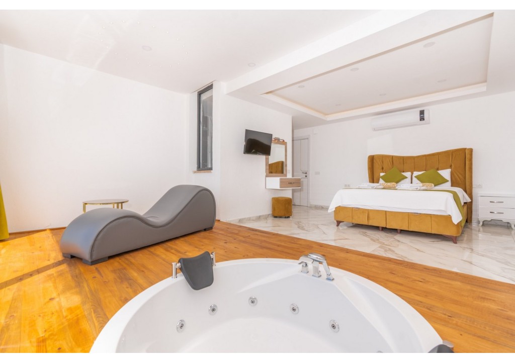 Detayları; Çift kişilik yatak, makyaj masası, komidin, klima, elbise dolabı, jakuzi, banyo ve tuvalet bulunmaktadır.