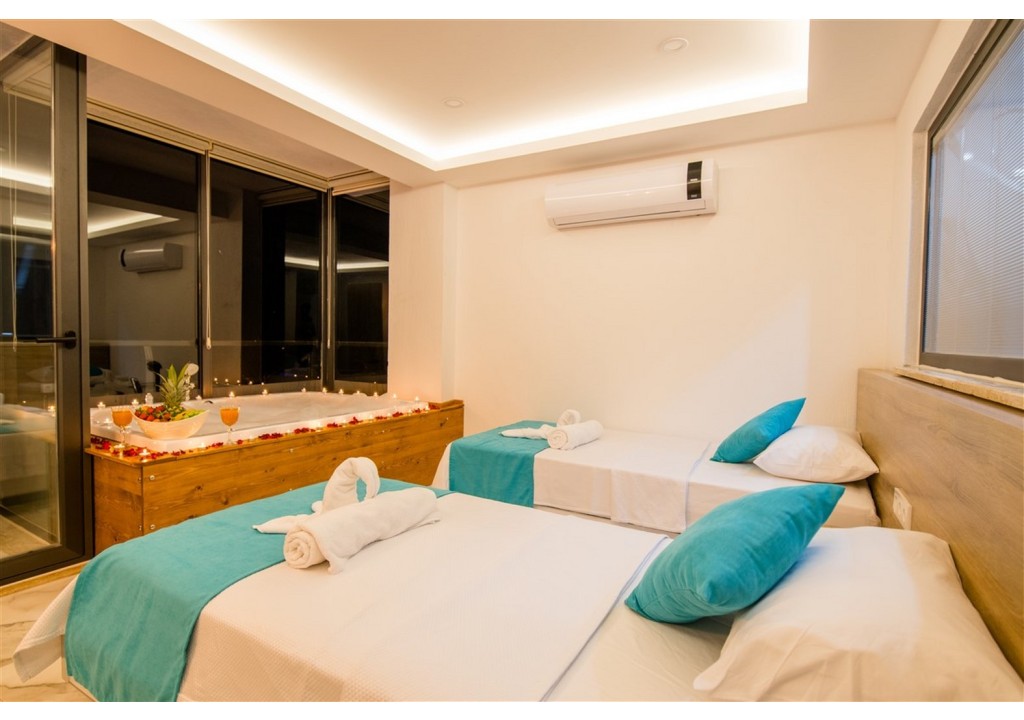 Detayları; İki adet tek kişilik yatak, makyaj masası, komidin, klima, elbise dolabı, jakuzi, banyo ve tuvalet bulunmaktadır.
