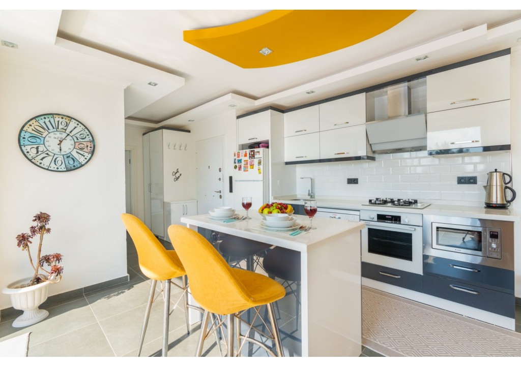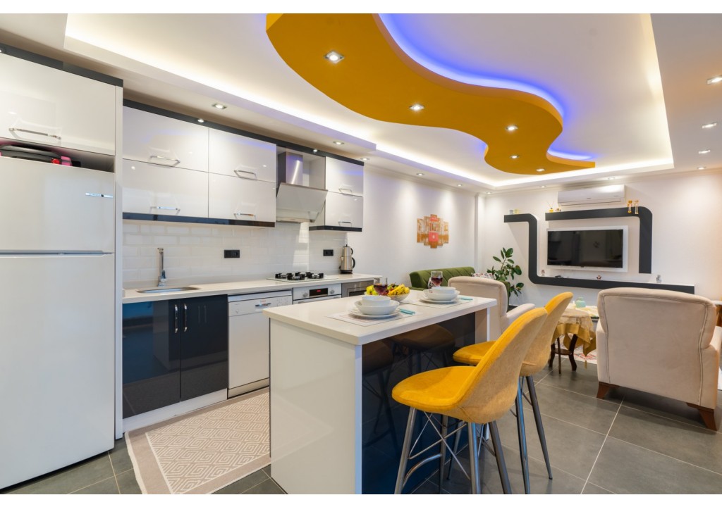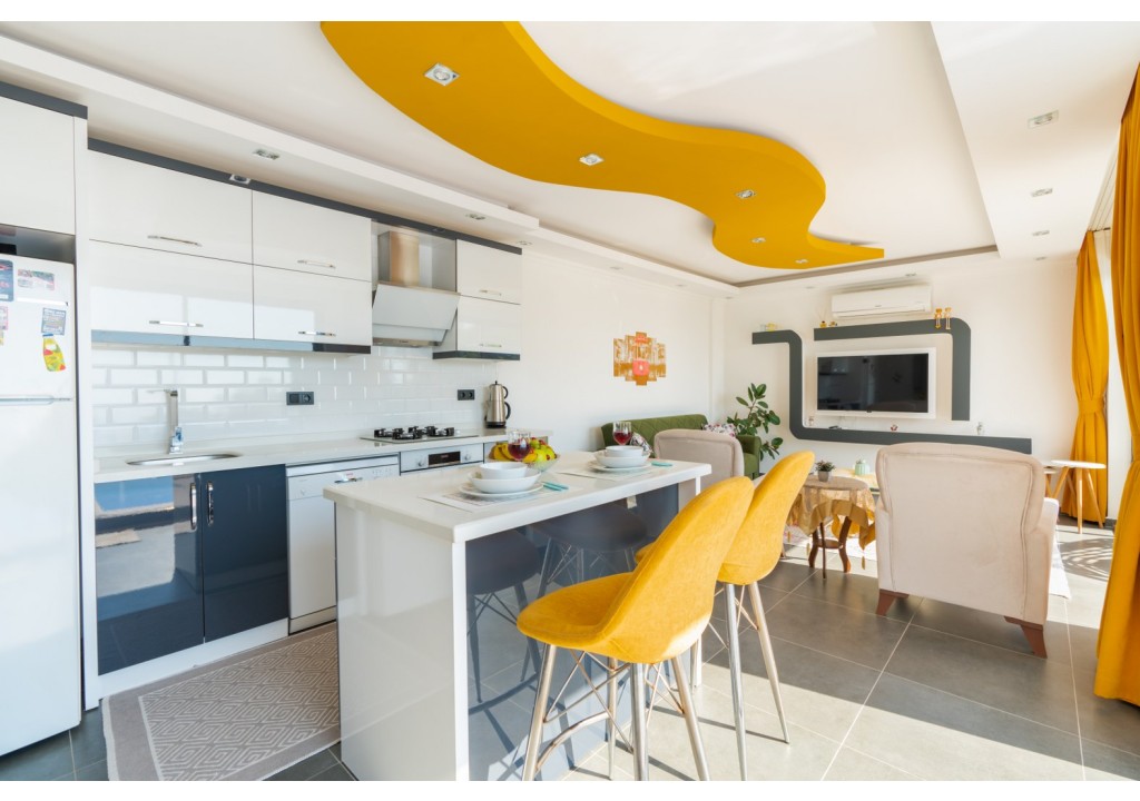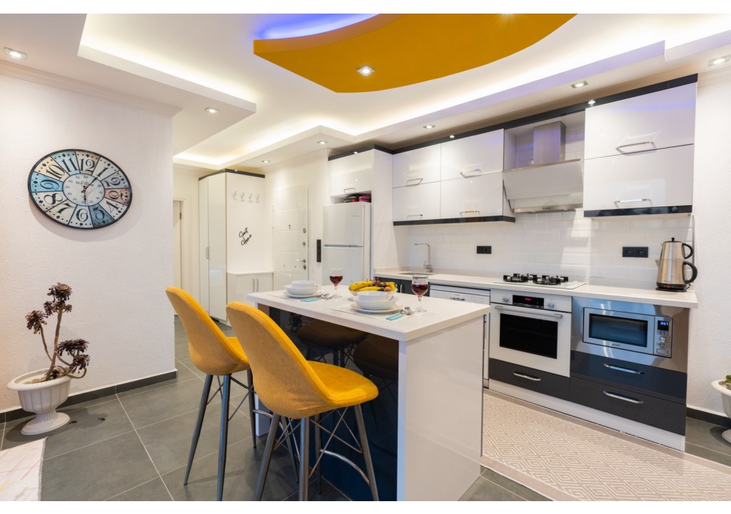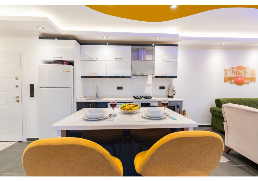 Detayları; Buz dolabı, Bulaşık makinesi, Fırın 4’lü Ocak (ankastre), Mikrodalga fırın, Elektrikli su ısıtıcı, 4 kişilik yemek takımı, Tava, Tencereler, Çatal bıçak vb.