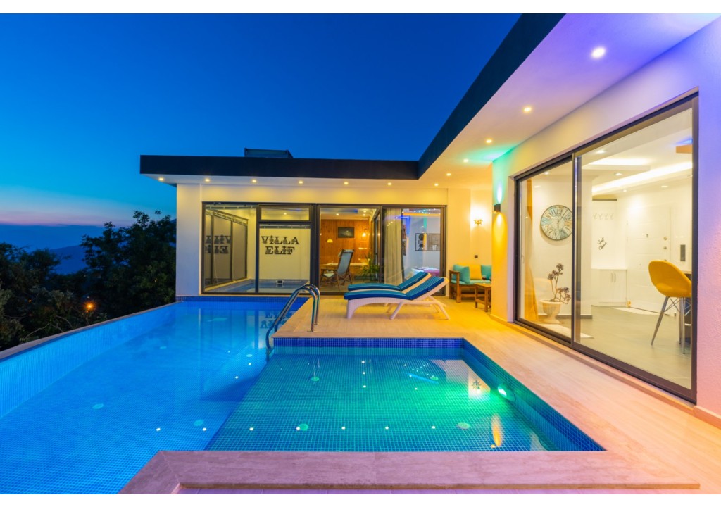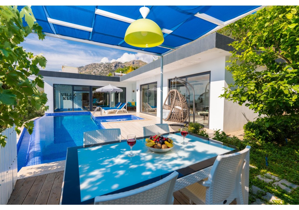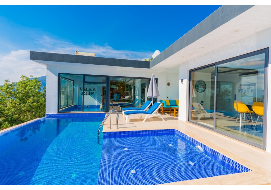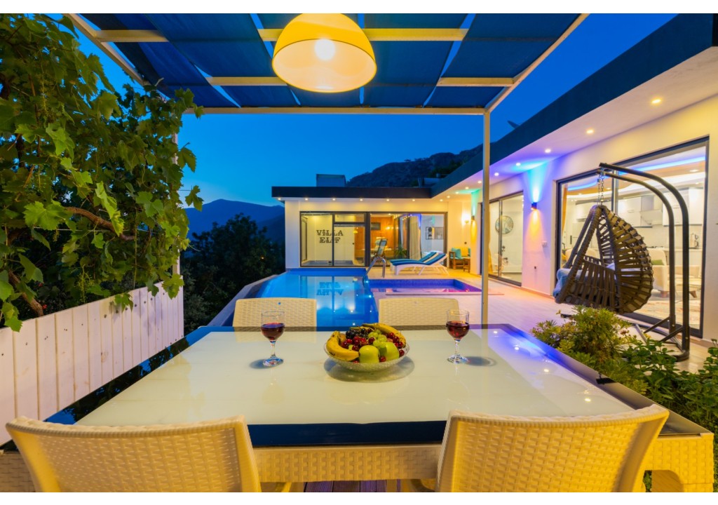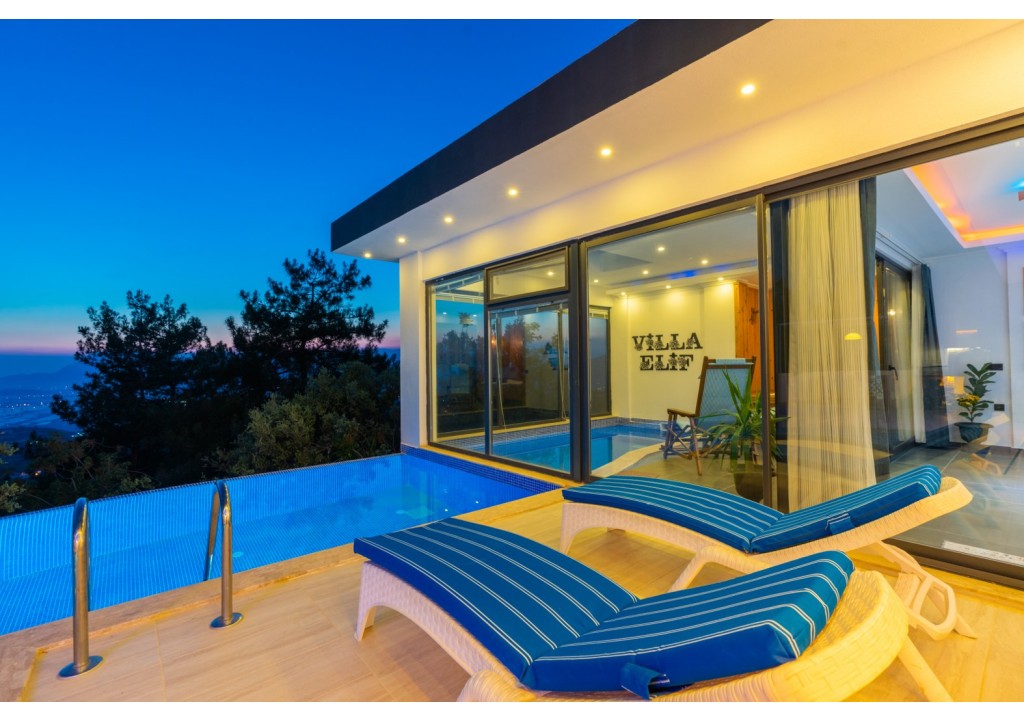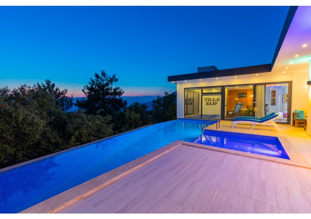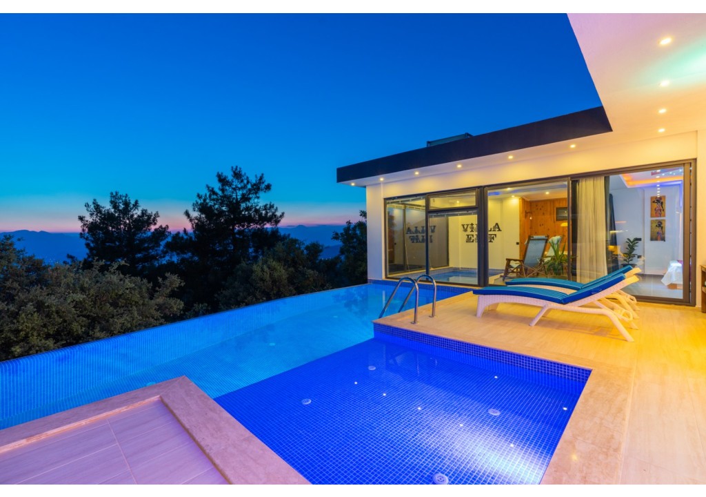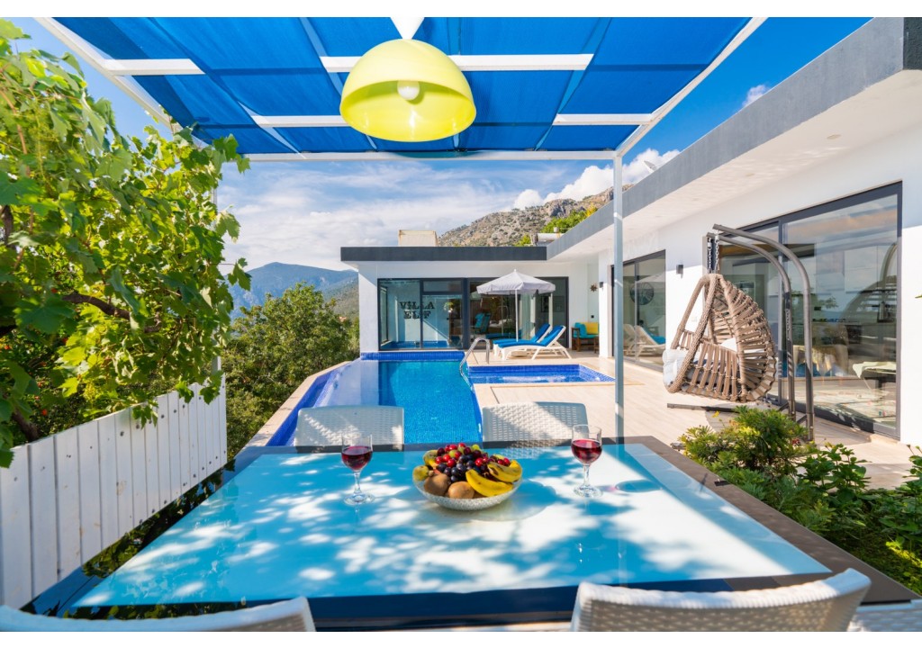 Kalkan’ın Üzümlü Köyü’nde yer alan Villa Elif Üzümlü; doğa içinde, havuz alanı dışarıdan görünmeyen muhafazakâr bir villadır. 2 kişi kapasiteli olan villamız, özellikle balayı çiftleri için ideal bir tatil seçeneği sunmaktadır.