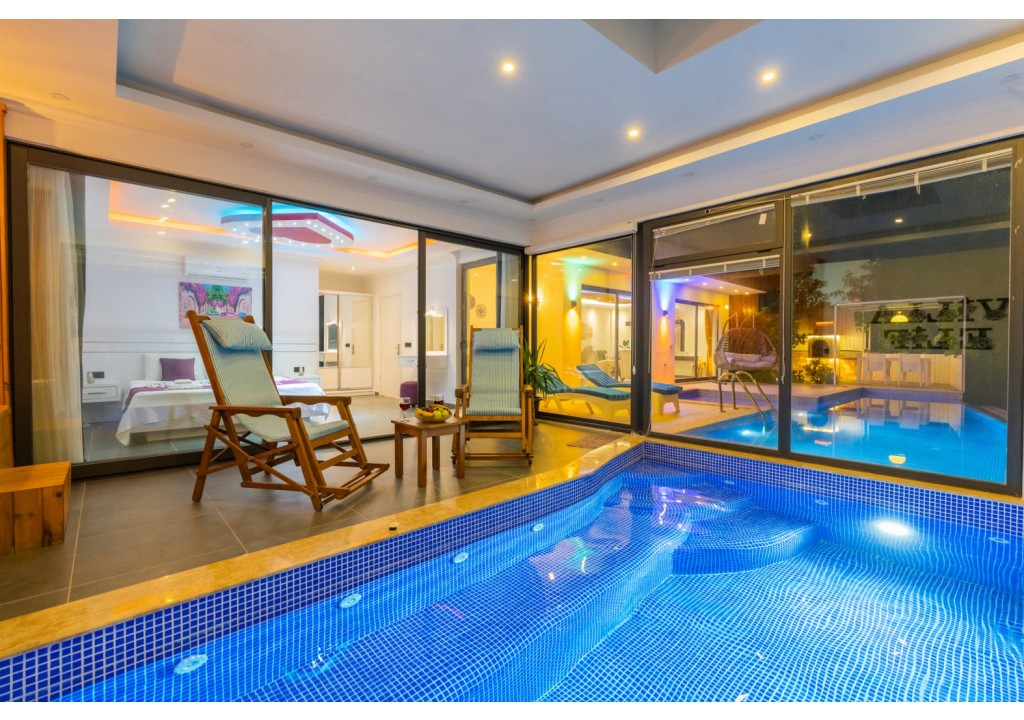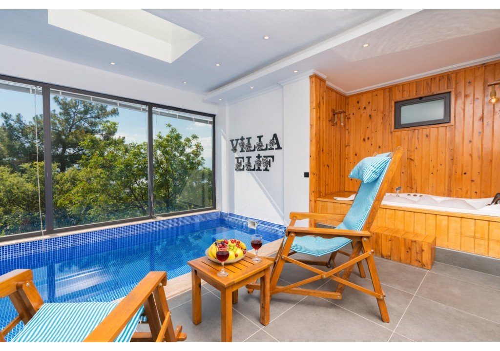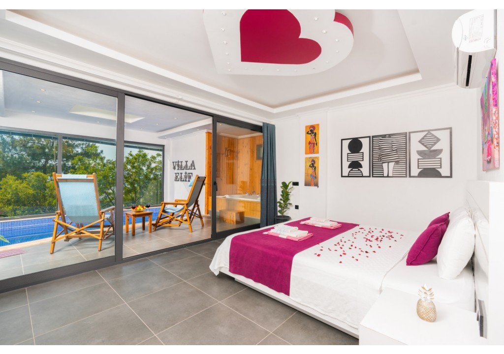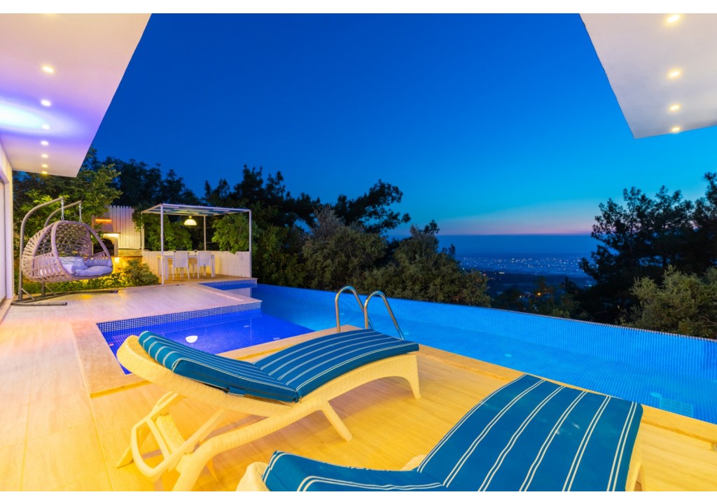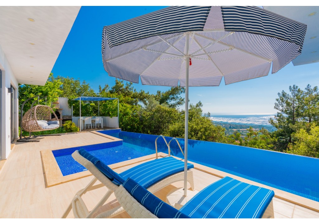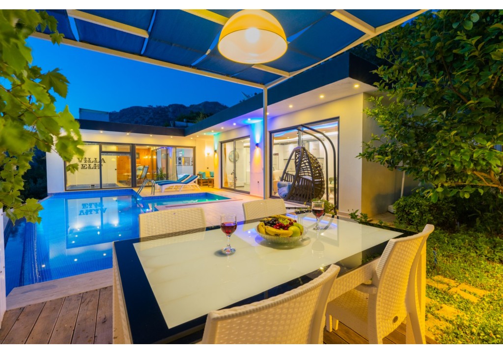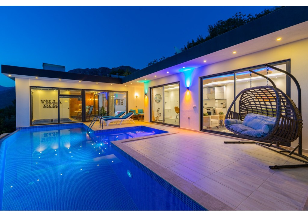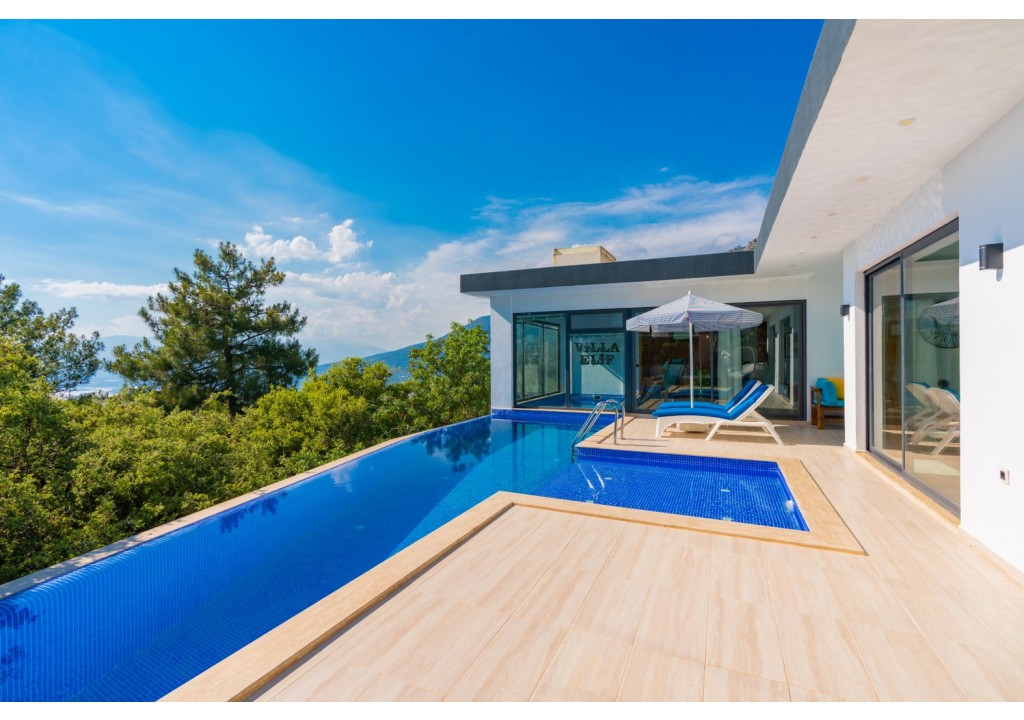 Kalkan’ın Üzümlü Köyü’nde yer alan Villa Elif Üzümlü; doğa içinde, havuz alanı dışarıdan görünmeyen muhafazakâr bir villadır. 2 kişi kapasiteli olan villamız, özellikle balayı çiftleri için ideal bir tatil seçeneği sunmaktadır.