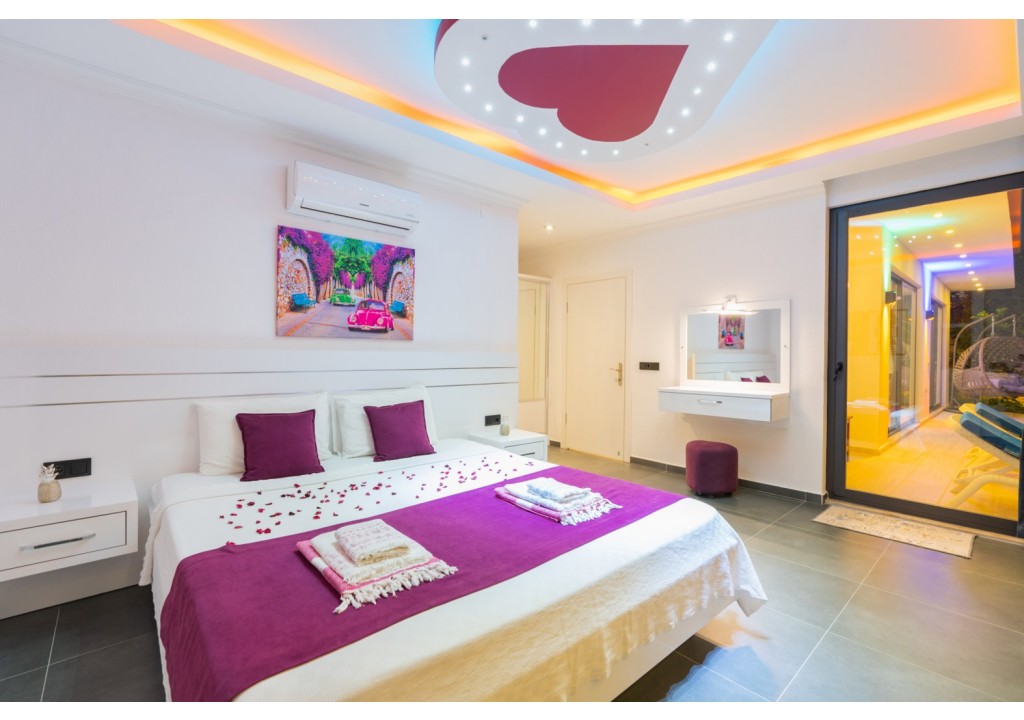 Detayları; Çift kişilik yatak, makyaj masası, komidin, klima, elbise dolabı, jakuzi, banyo ve tuvalet bulunmaktadır.
