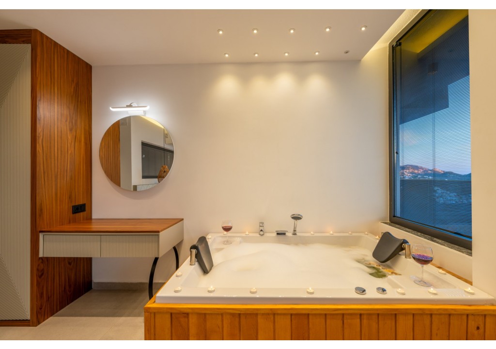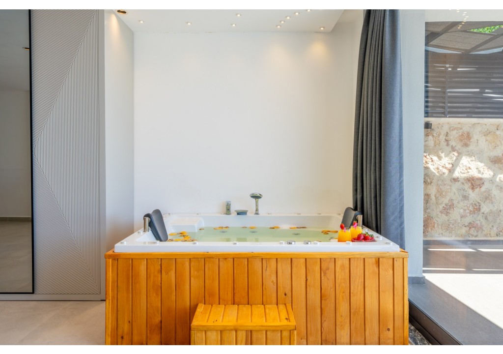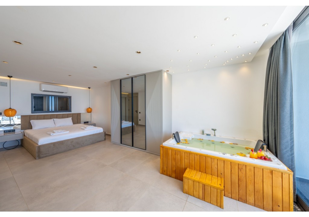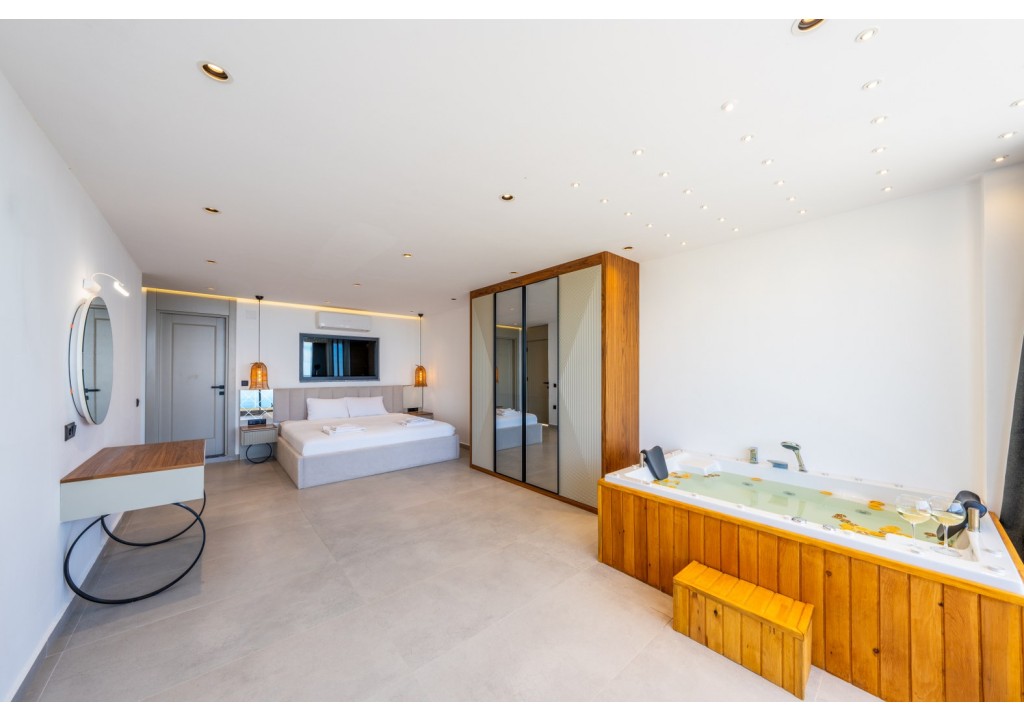 Detayları; Çift kişilik yatak, makyaj masası, komidin, klima, elbise dolabı, jakuzi, banyo ve tuvalet bulunmaktadır.