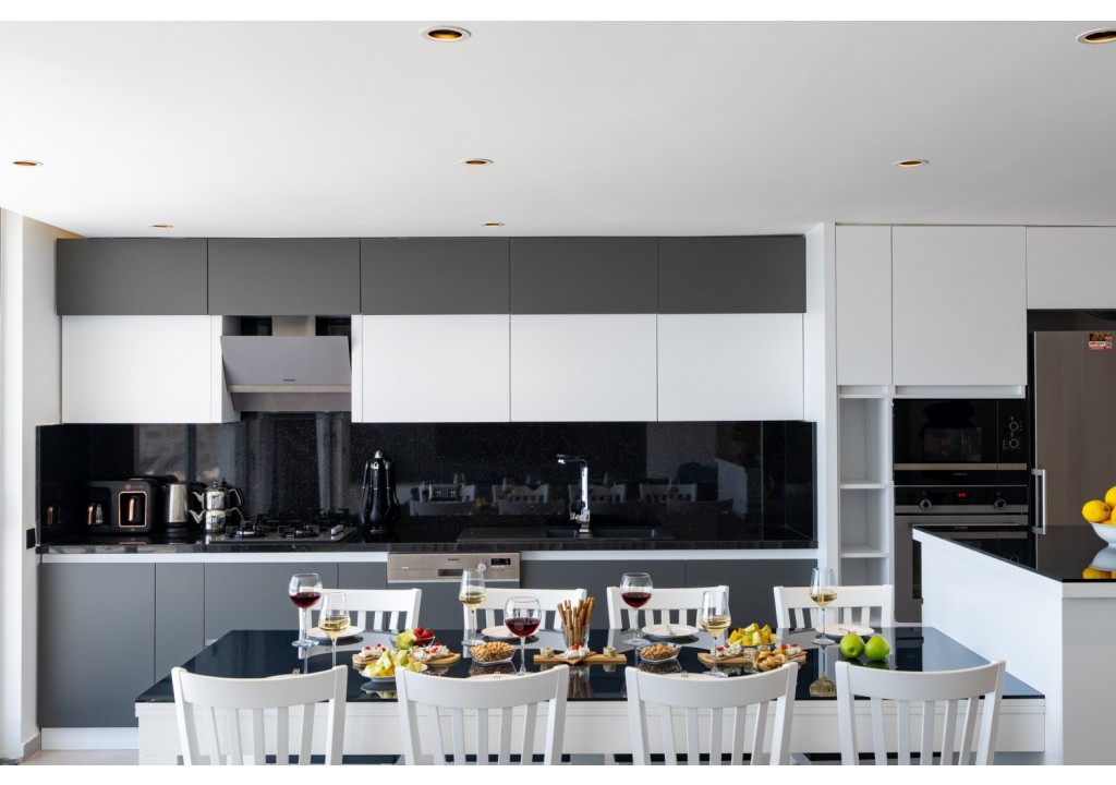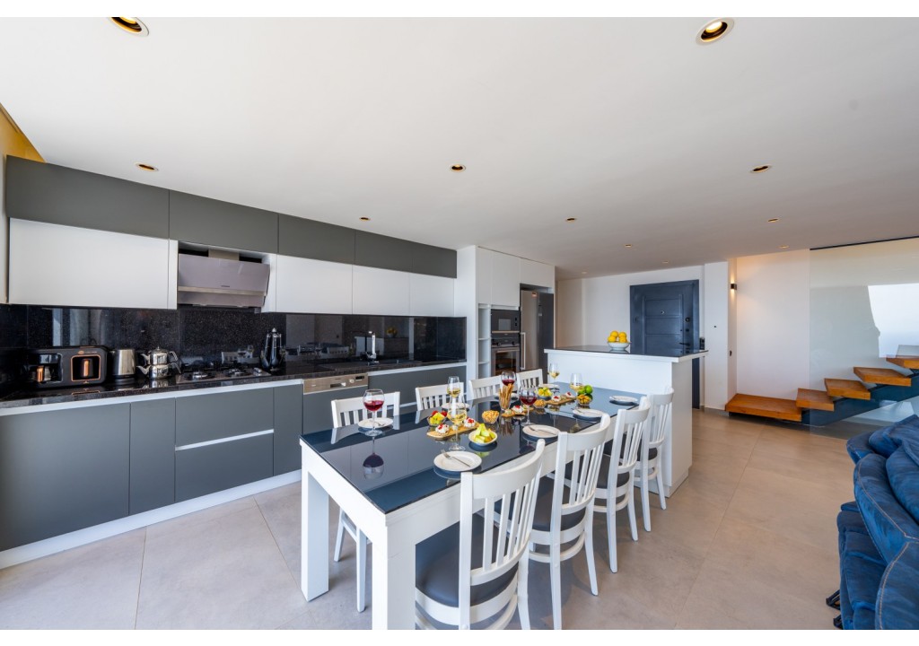Detayları; Buz dolabı, Bulaşık makinesi, Fırın 4’lü Ocak (ankastre), Mikrodalga fırın, Elektrikli su ısıtıcı, 10 kişilik yemek takımı, Tava, Tencereler, Çatal bıçak vb.