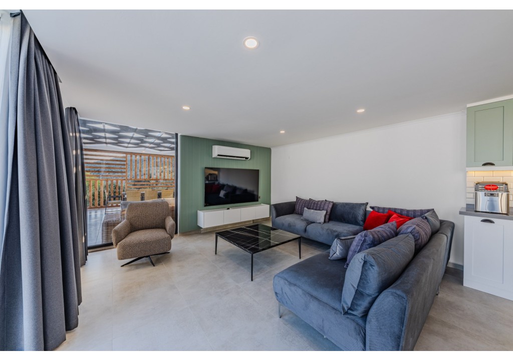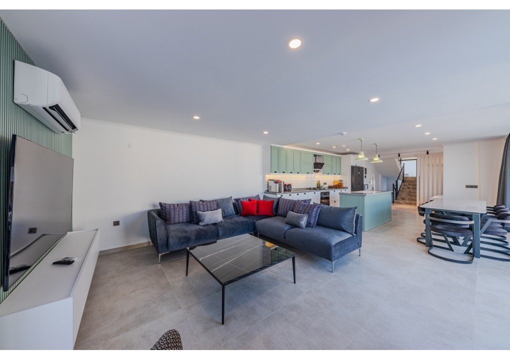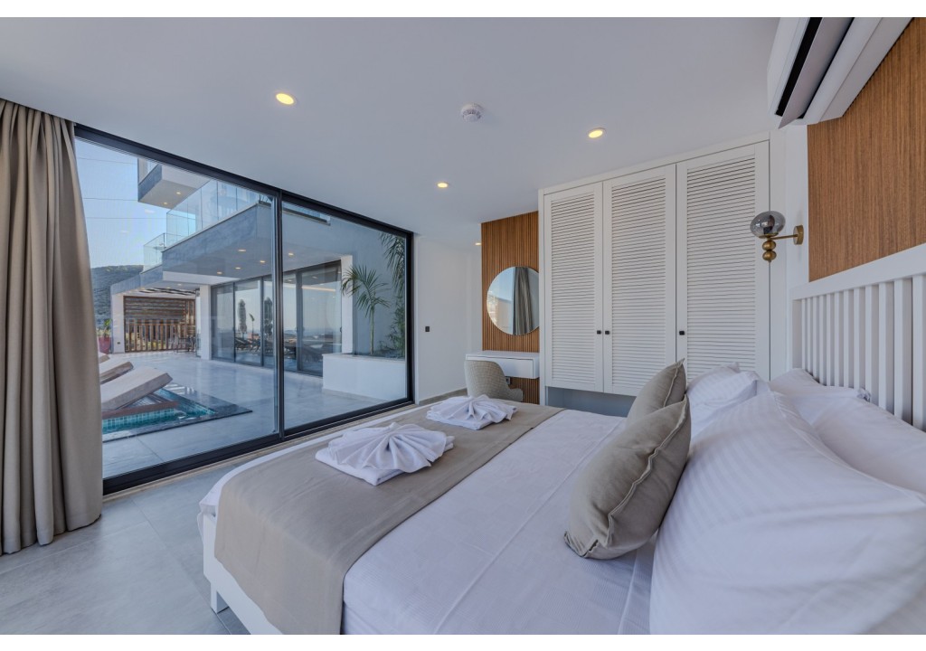 Detayları; Oturma grubu, uydu TV, klima, yemek masası ve havuz terasına çıkış bulunmaktadır.
