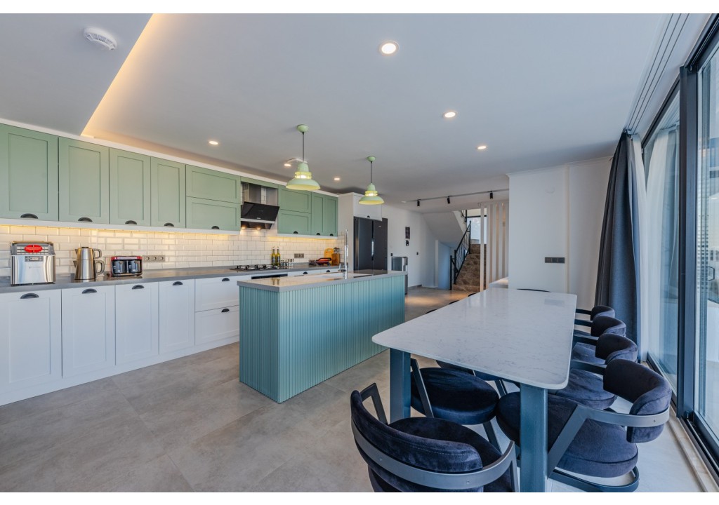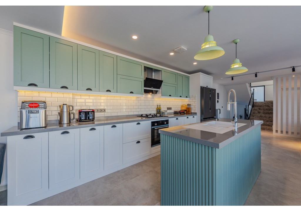 Detayları; Buzdolabı, bulaşık makinesi, fırın, 4’lü ocak, mikrodalga fırın, elektrikli su ısıtıcı, yemek takımı, tava, tencereler, çatal bıçak ve mutfak ekipmanları bulunmaktadır.
