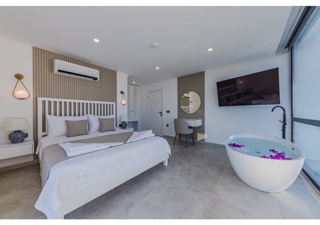 Detayları; Çift kişilik yatak, makyaj masası, komodin, klima, elbise dolabı, banyo ve tuvalet yer almaktadır.