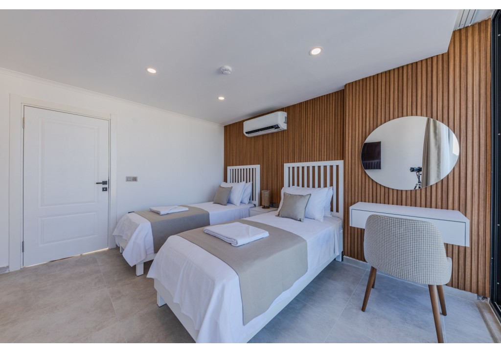 Detayları; İki adet tek kişilik yatak, makyaj masası, komodin, klima, elbise dolabı, banyo ve tuvalet yer almaktadır.
