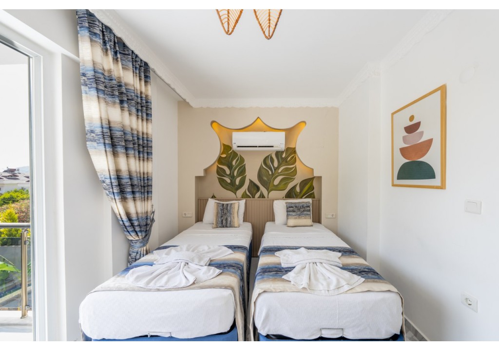 Detayları; 2 adet tek kişilik yatak, makyaj masası, komodin, klima, elbise dolabı, banyo ve tuvalet bulunmaktadır.