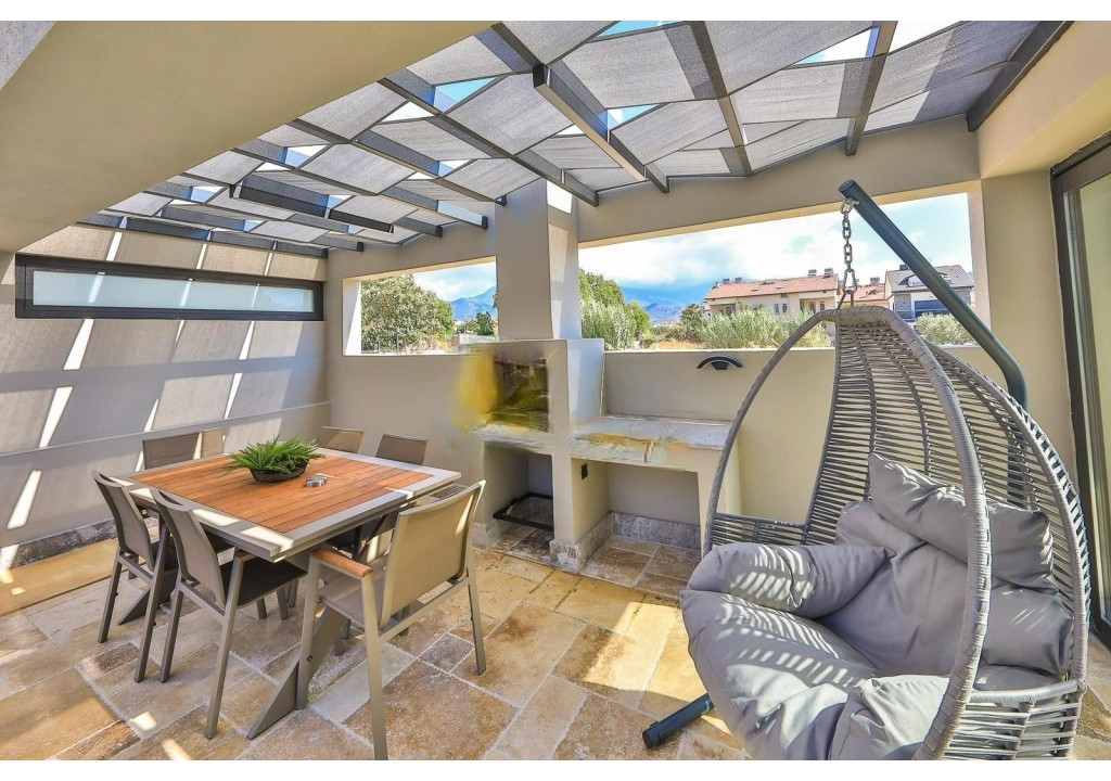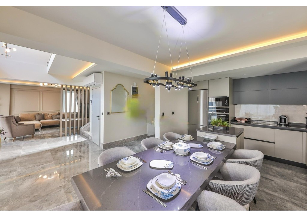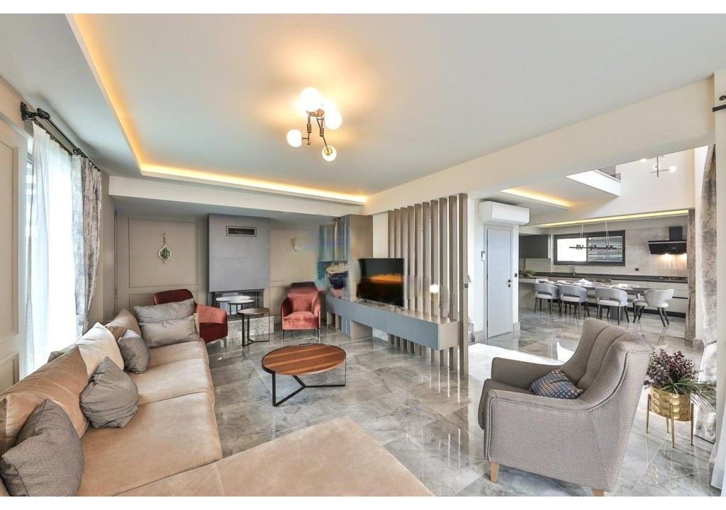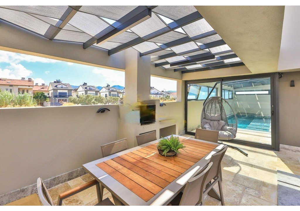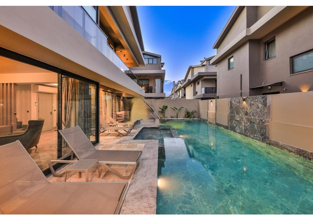 Detayları; Oturma grubu, Uydu TV (LCD), Klima,10 kişilik yemek masası, Havuz terasına çıkış,