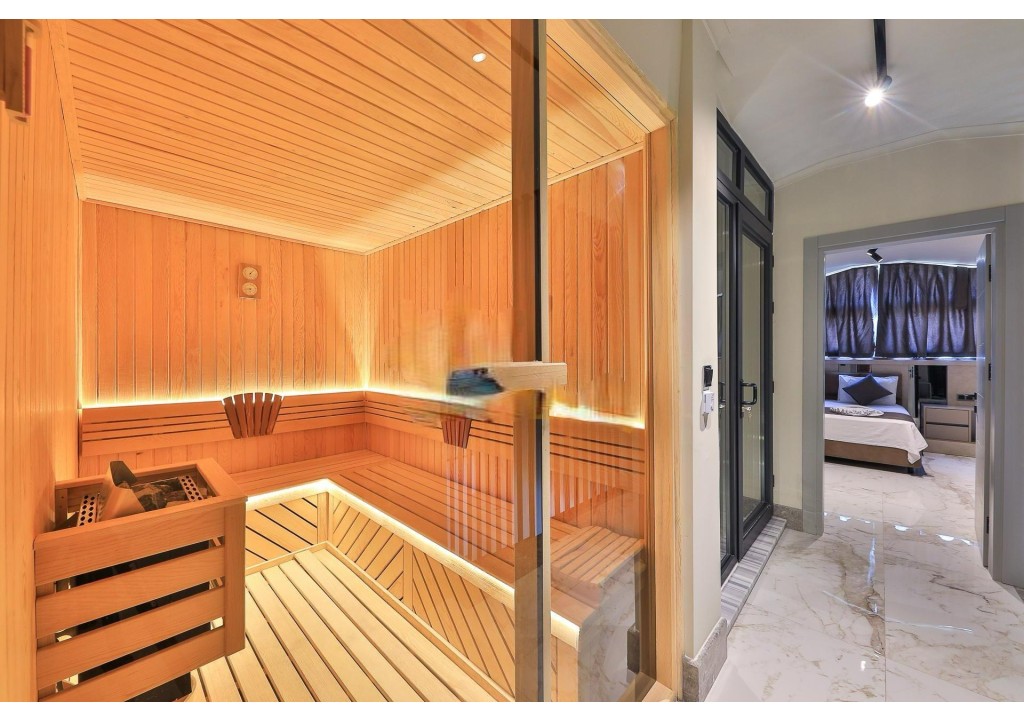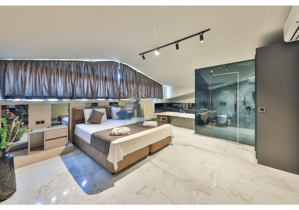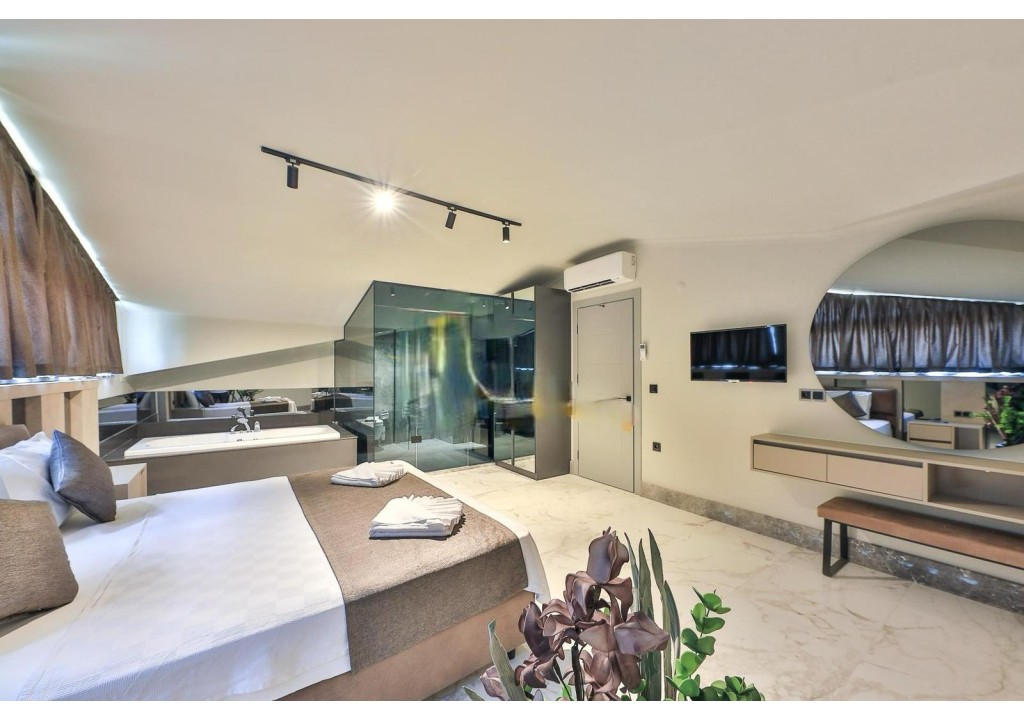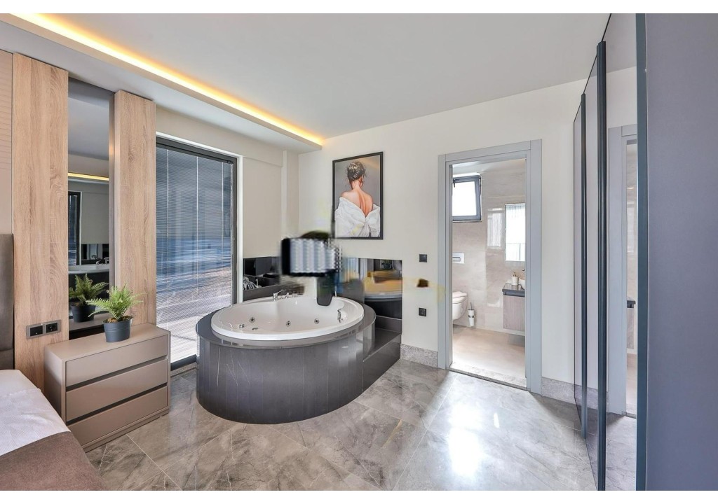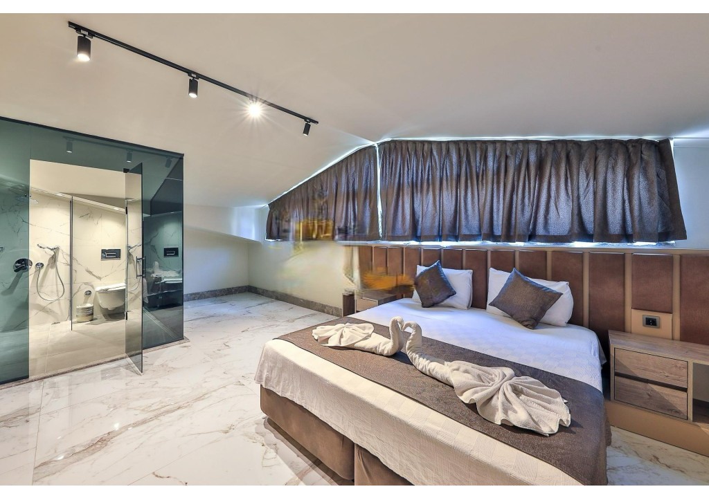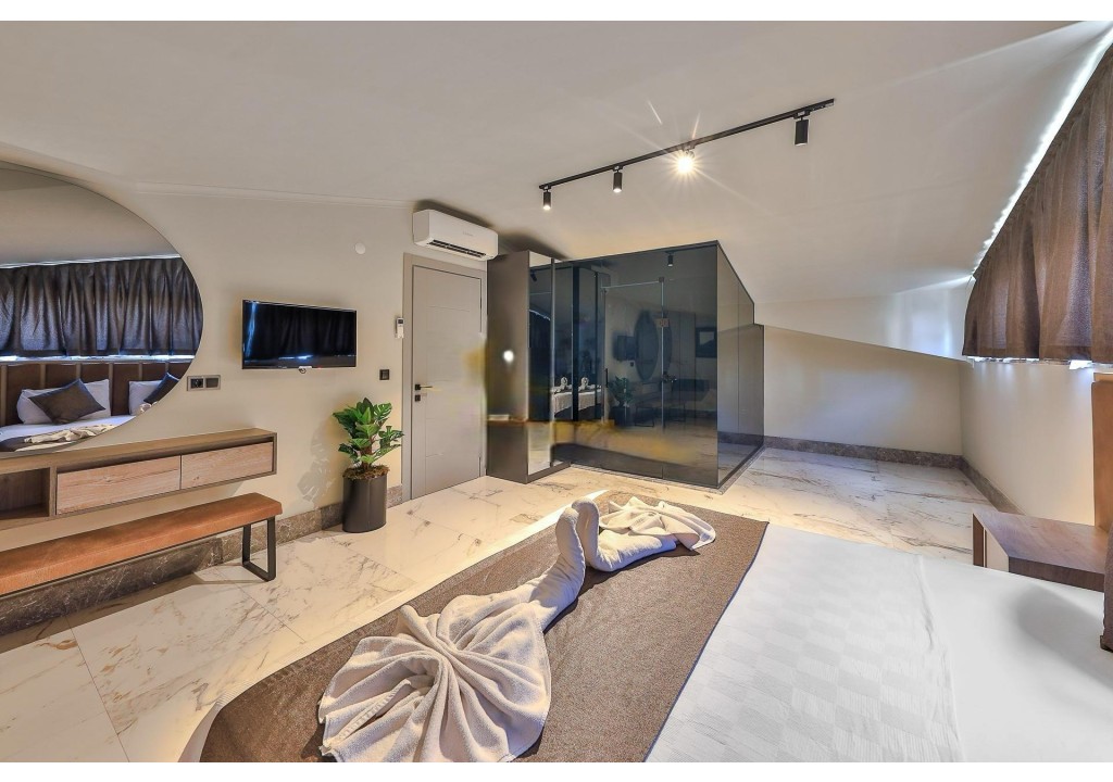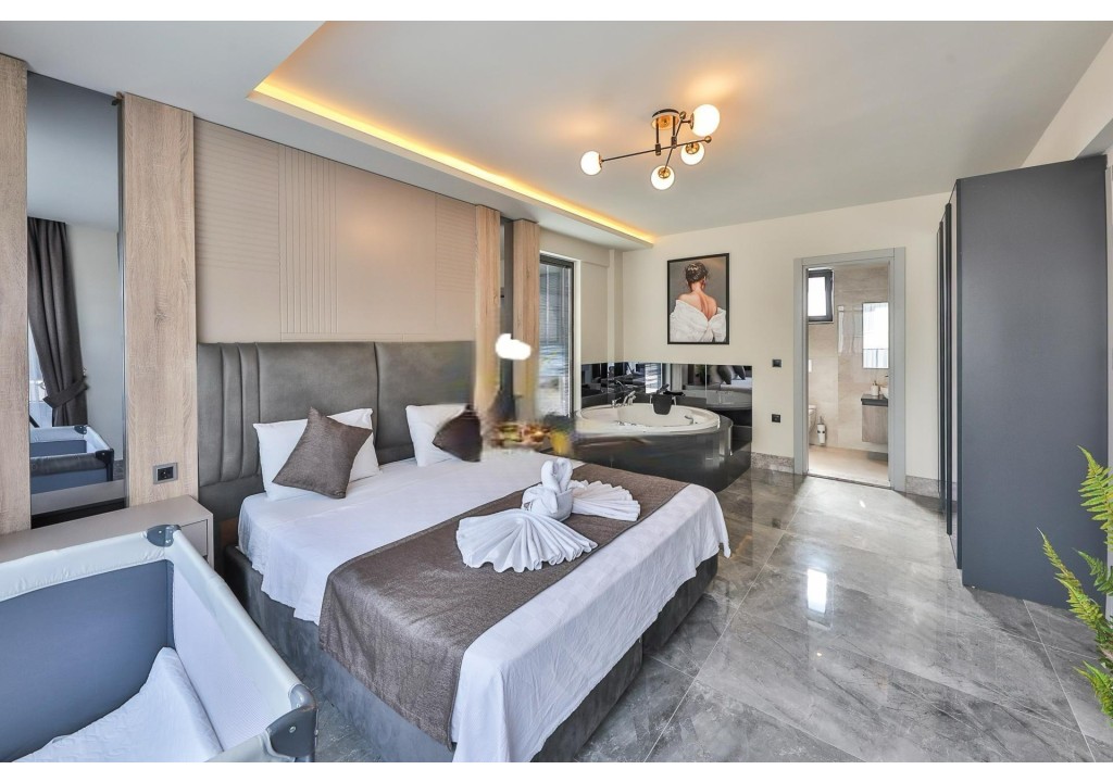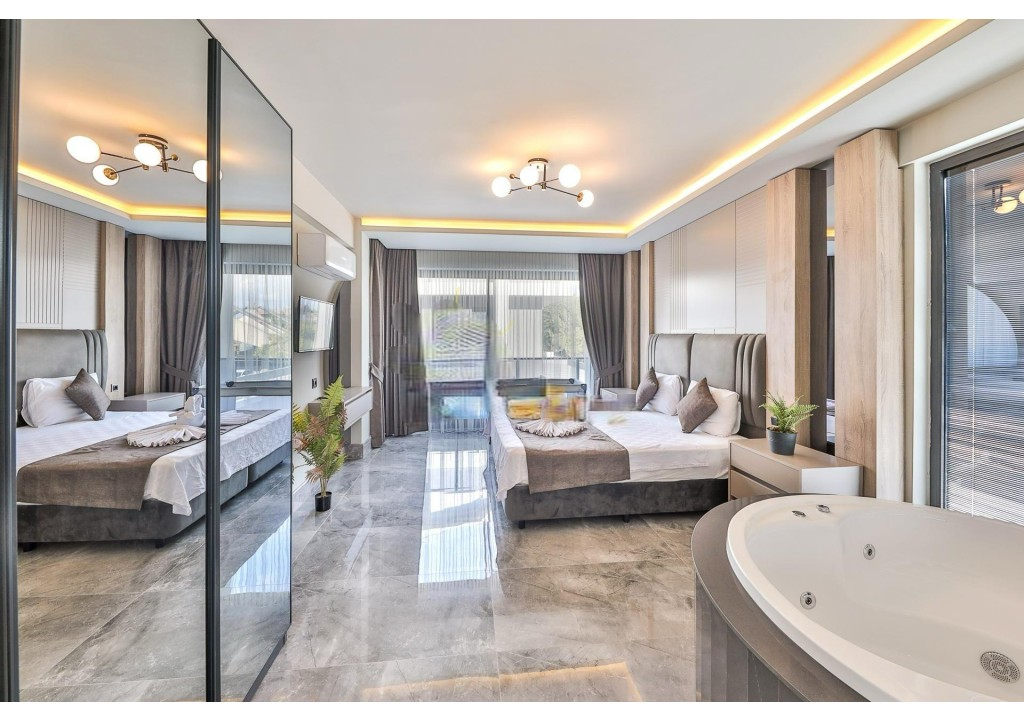 Detayları : Çift kişilik yatak, Elbise dolabı, Komidin, Makyaj masası ,jakuzi, TV, Klima, Banyo bulunmaktadır.