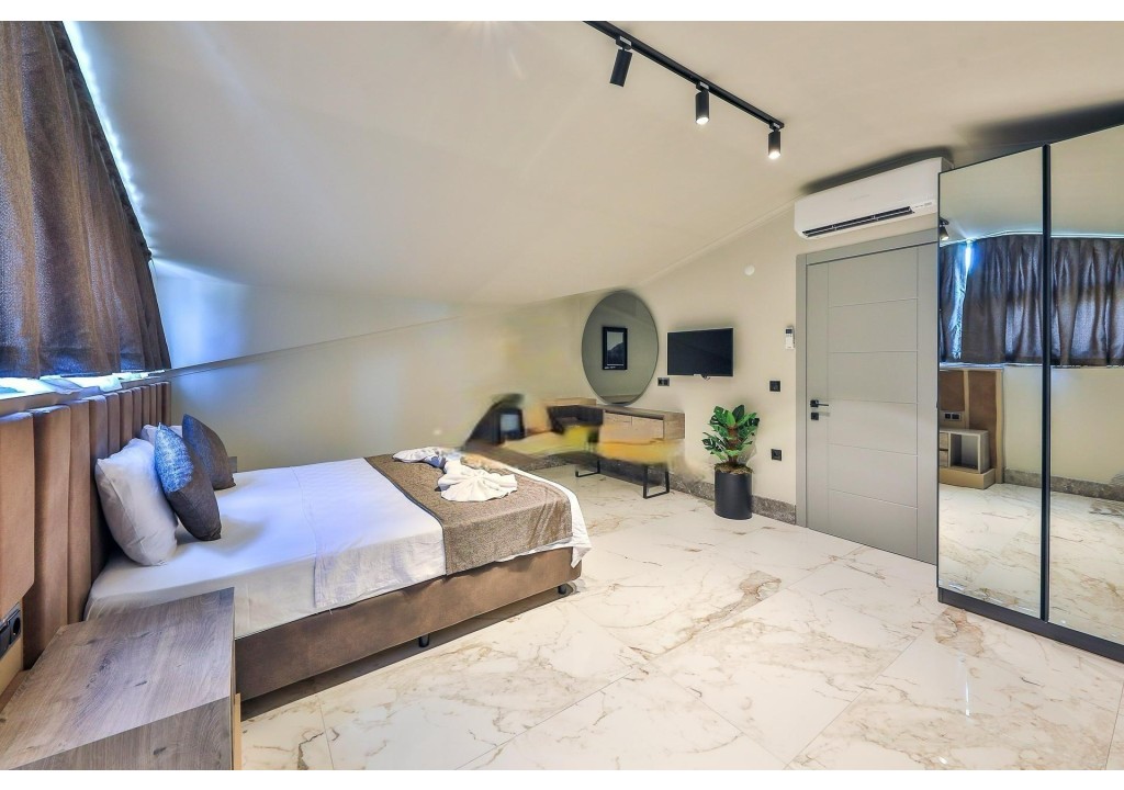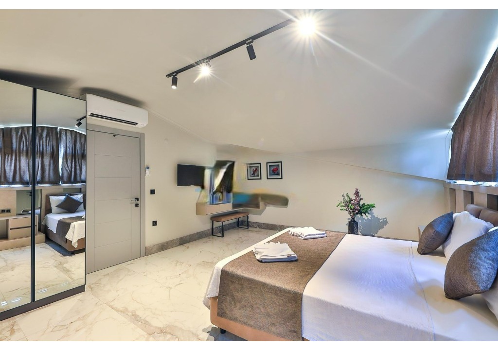 Detayları : Çift kişilik yatak, Elbise dolabı, Komidin, Makyaj masası, Klima, Banyo bulunmaktadır.