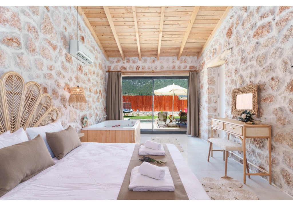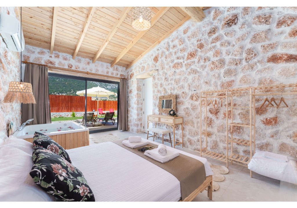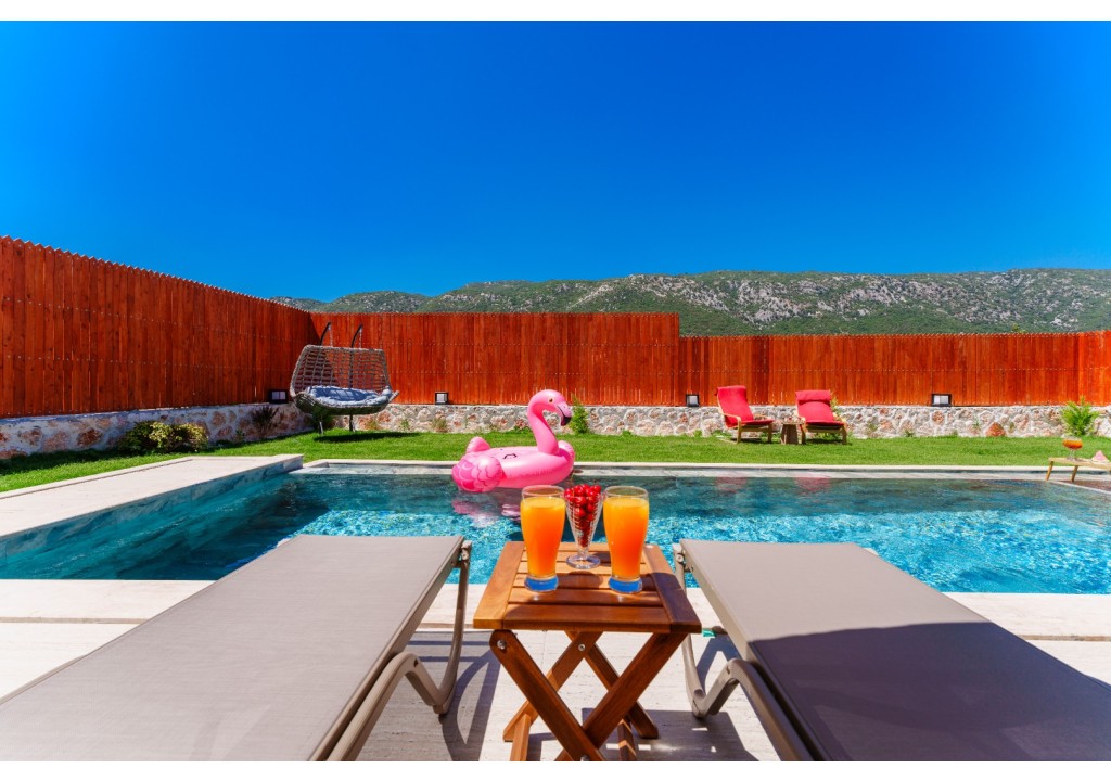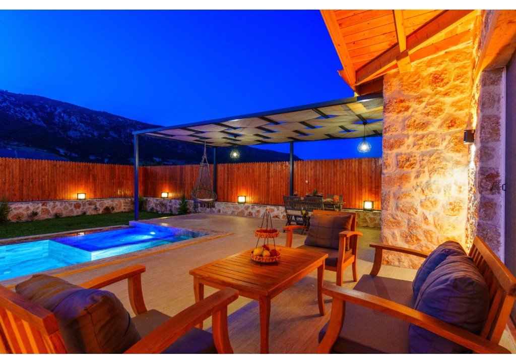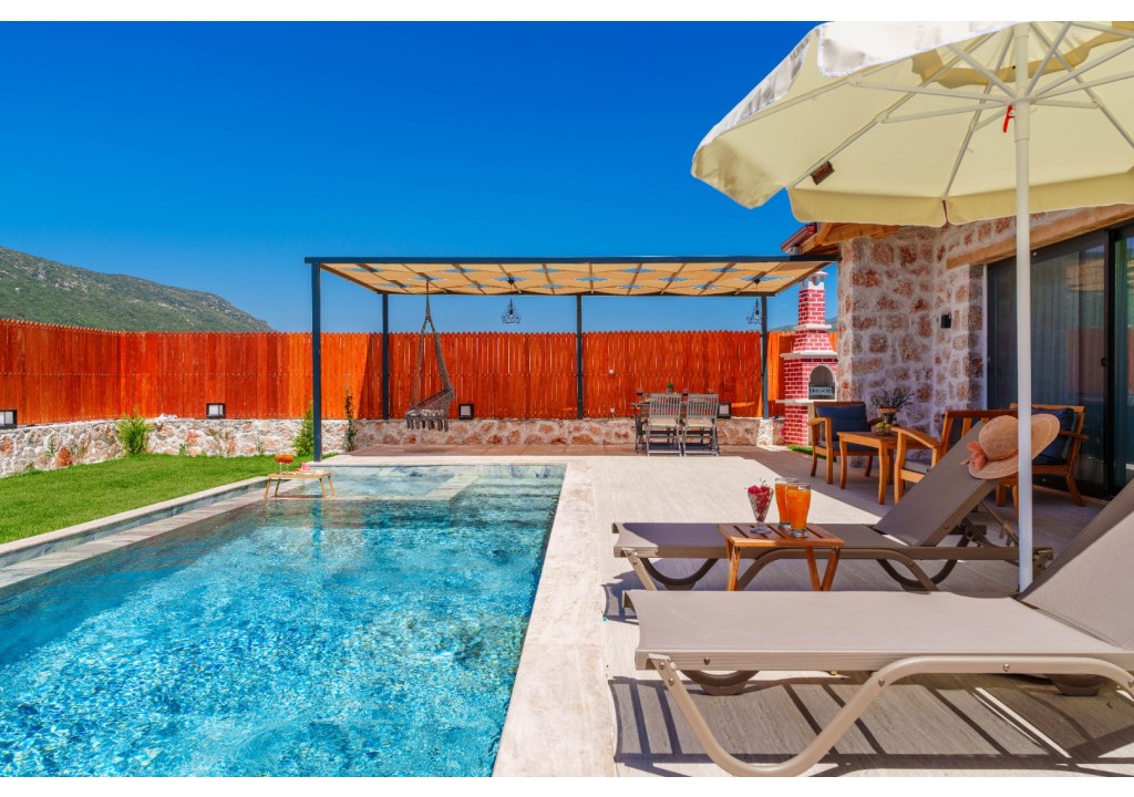 Kalkan’ın Sarıbelen köyünde, yeşillikler içinde konumlanan Villa Fidelya, tek yatak odalı ve havuz alanı dışarıdan görünmeyen muhafazakâr bir villadır. Sakin ve huzurlu bir tatil arayan balayı çiftleri için ideal bir konaklama seçeneği sunmaktadır.