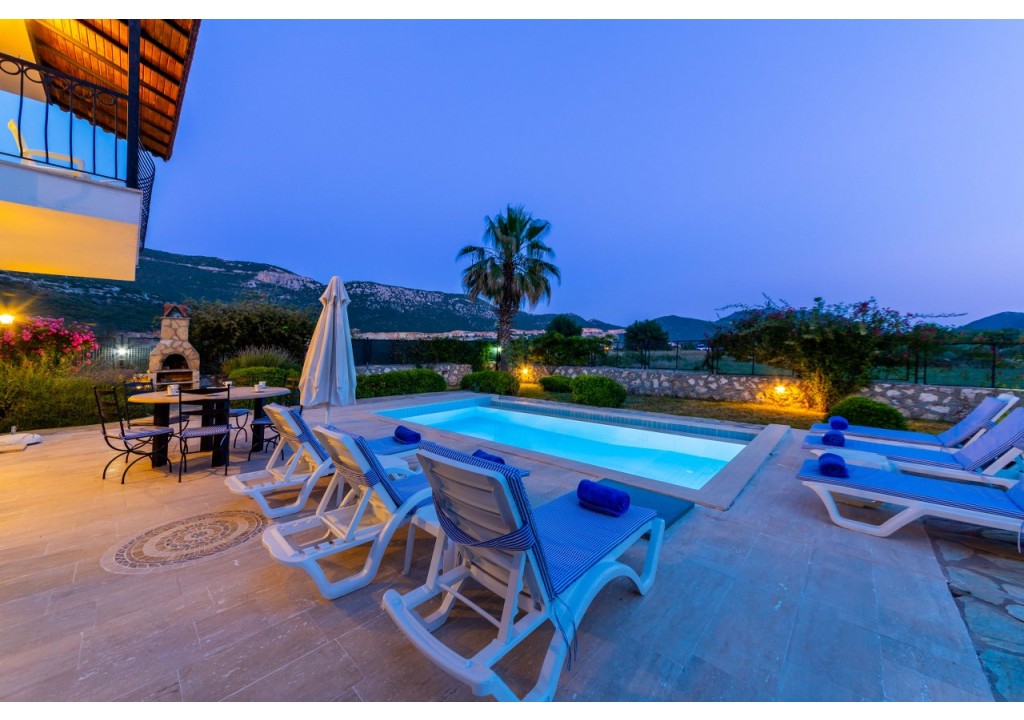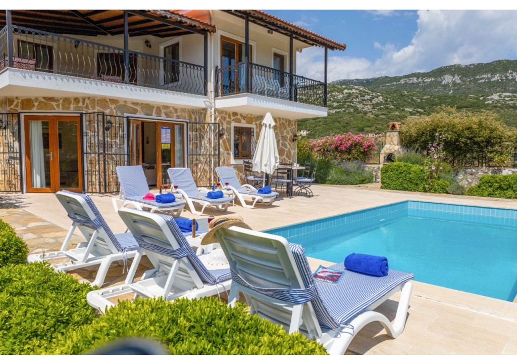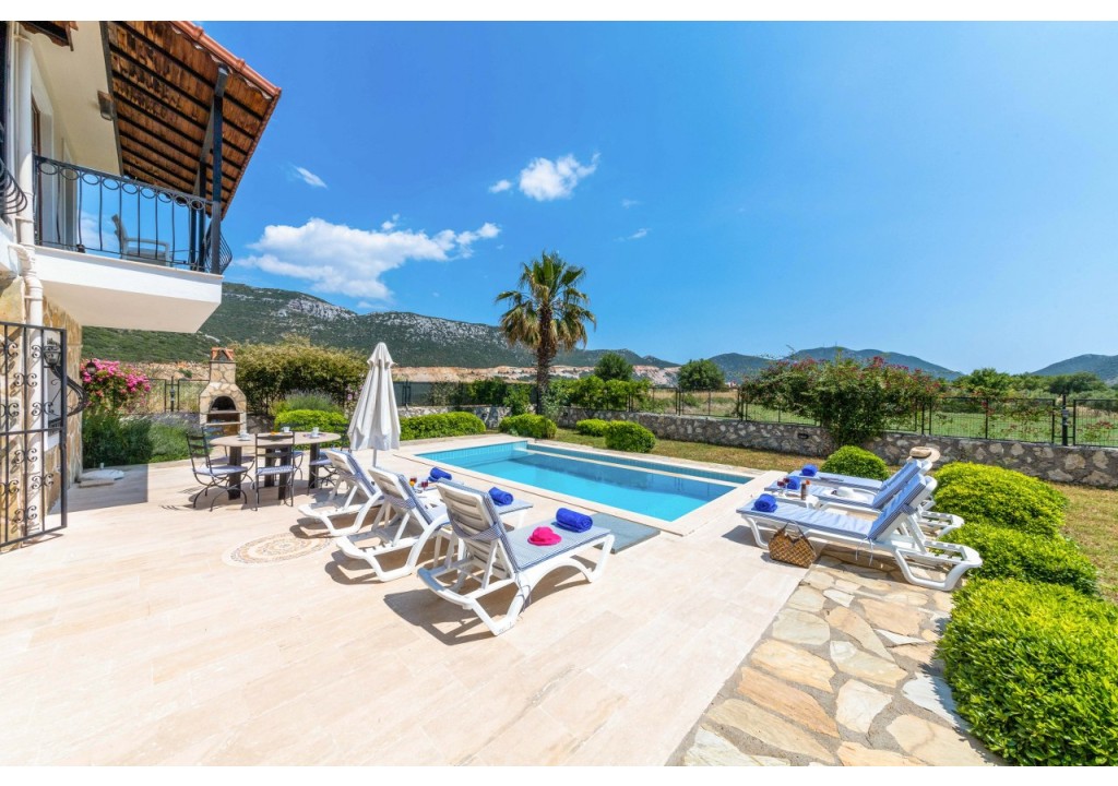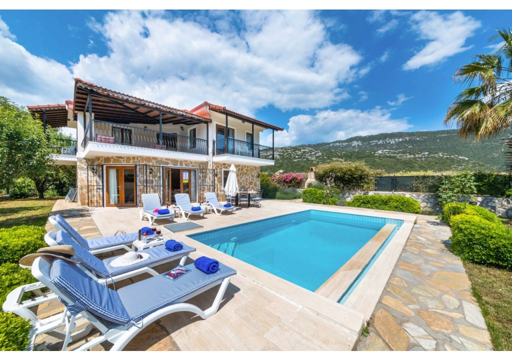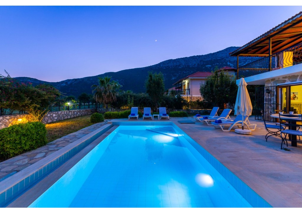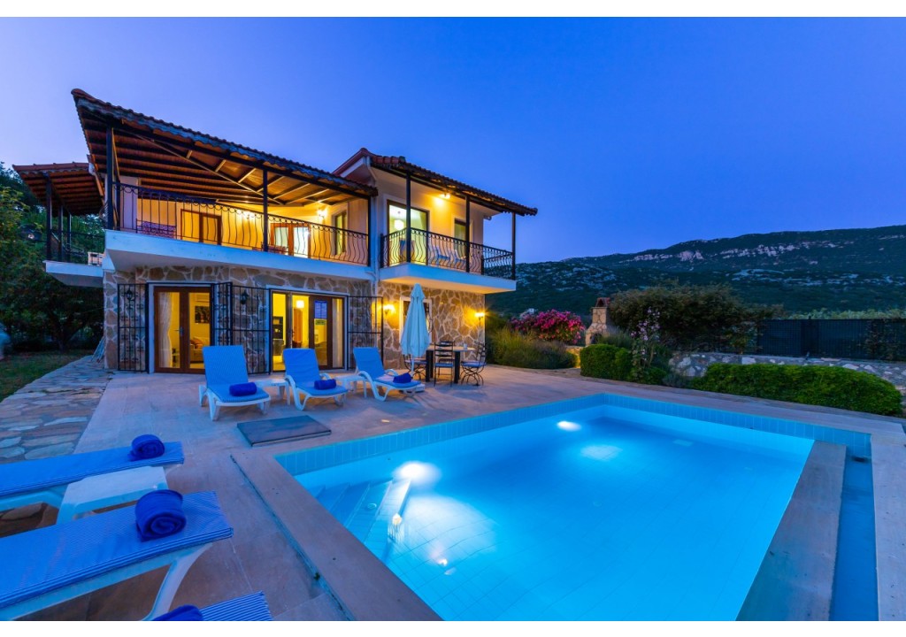 Kalkan’ın Bezirgan mevkisinde konumlanan, 3 yatak odalı ve doğa ile iç içe olan villamız, havuz bölgesi dışarıdan görünmeyecek şekilde tasarlanmıştır. Muhafazakâr aileler ve balayı çiftleri için en uygun seçeneklerden biridir.