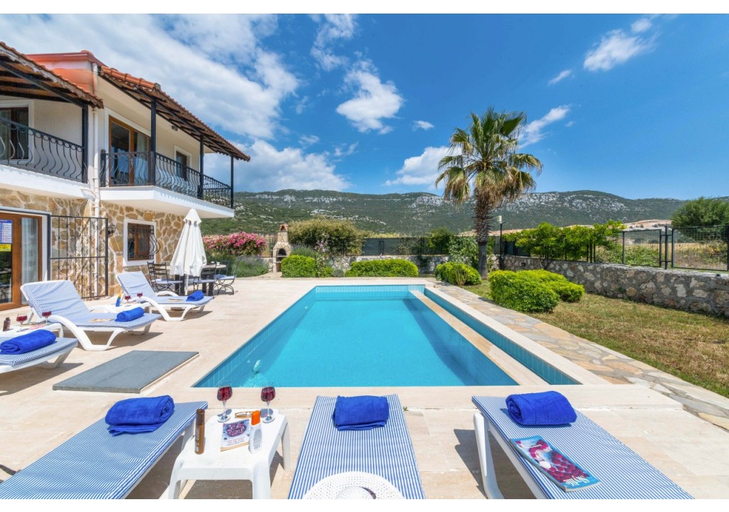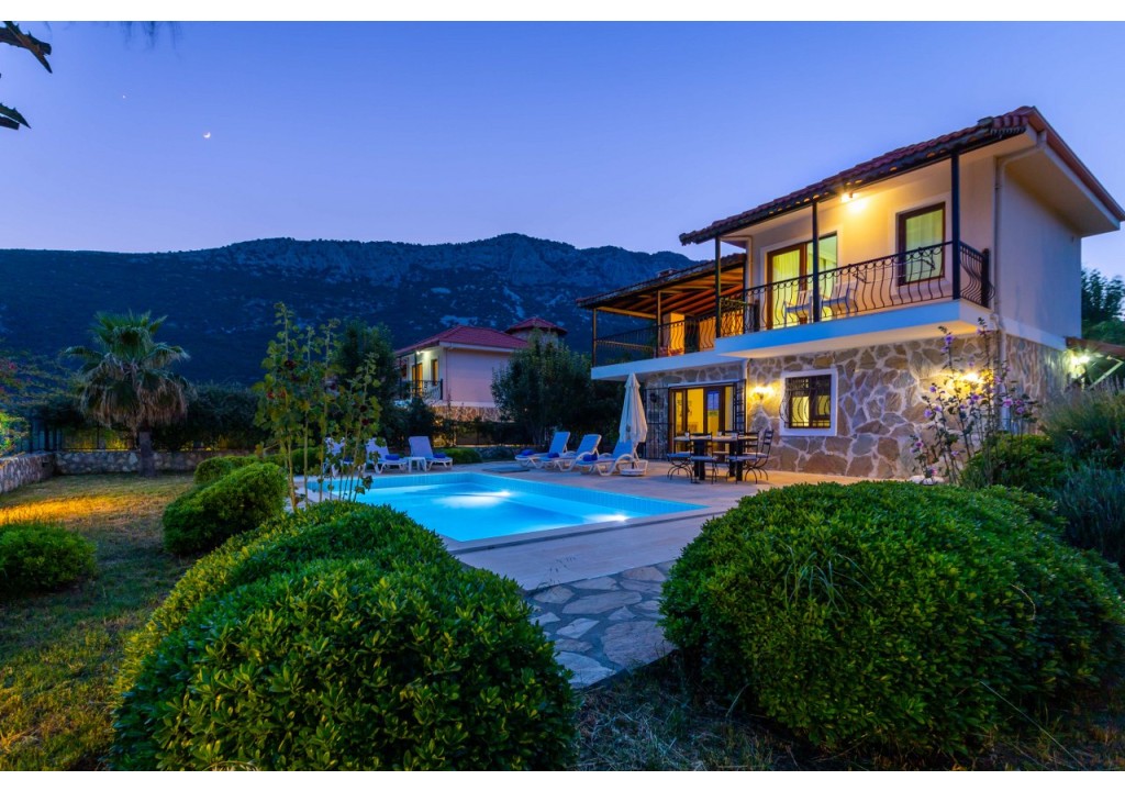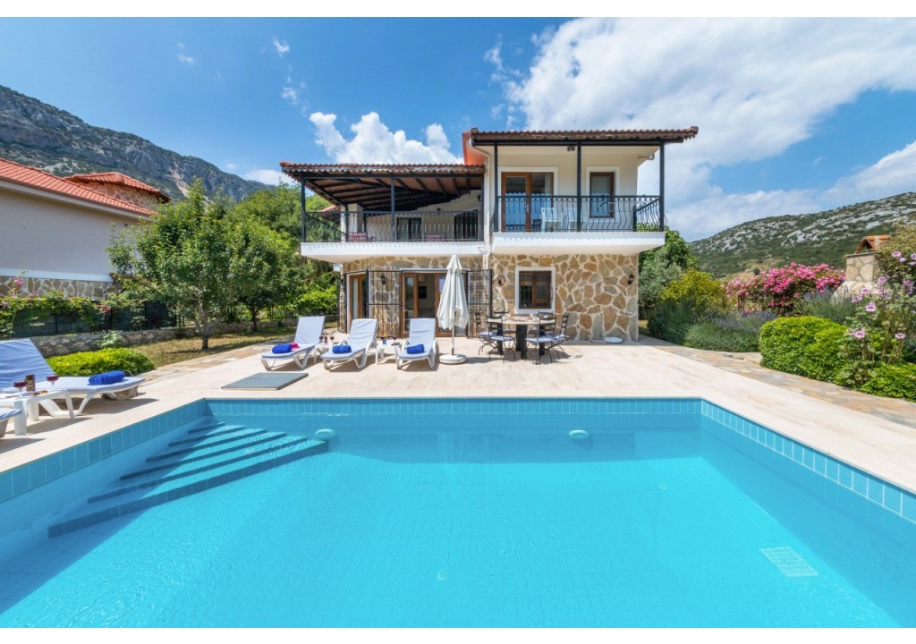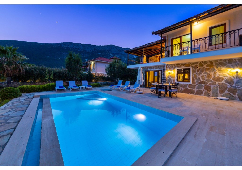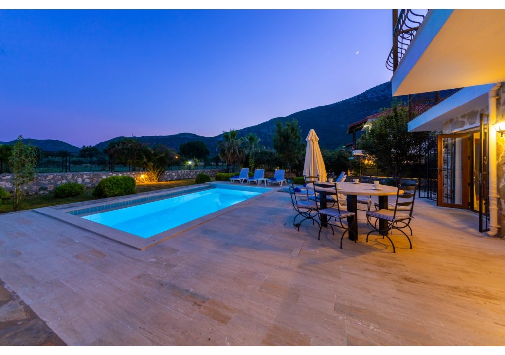 Kalkan’ın Bezirgan mevkisinde konumlanan, 3 yatak odalı ve doğa ile iç içe olan villamız, havuz bölgesi dışarıdan görünmeyecek şekilde tasarlanmıştır. Muhafazakâr aileler ve balayı çiftleri için en uygun seçeneklerden biridir.