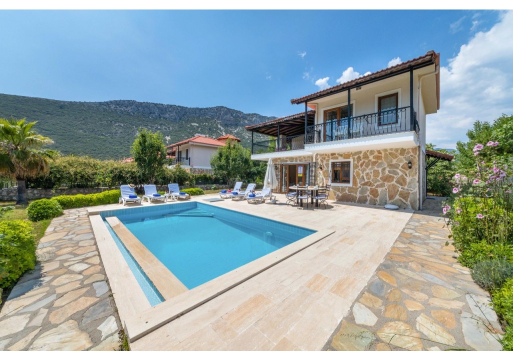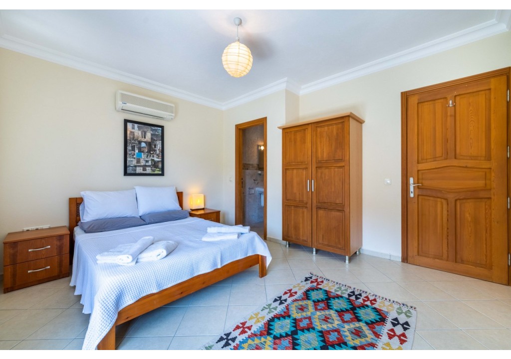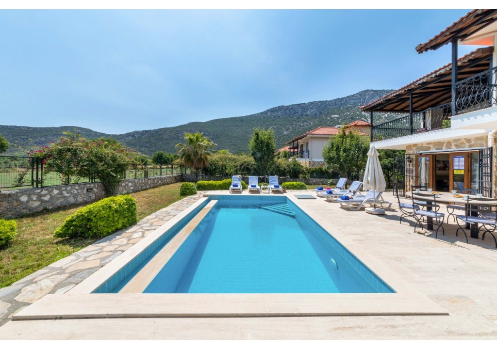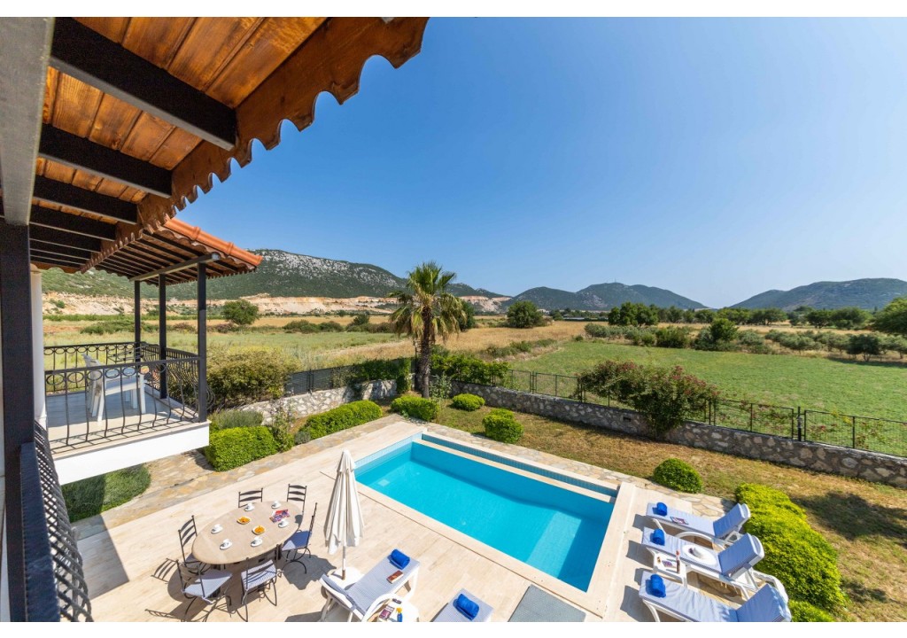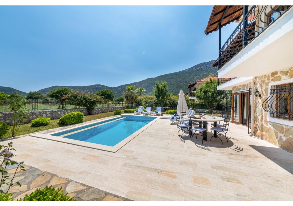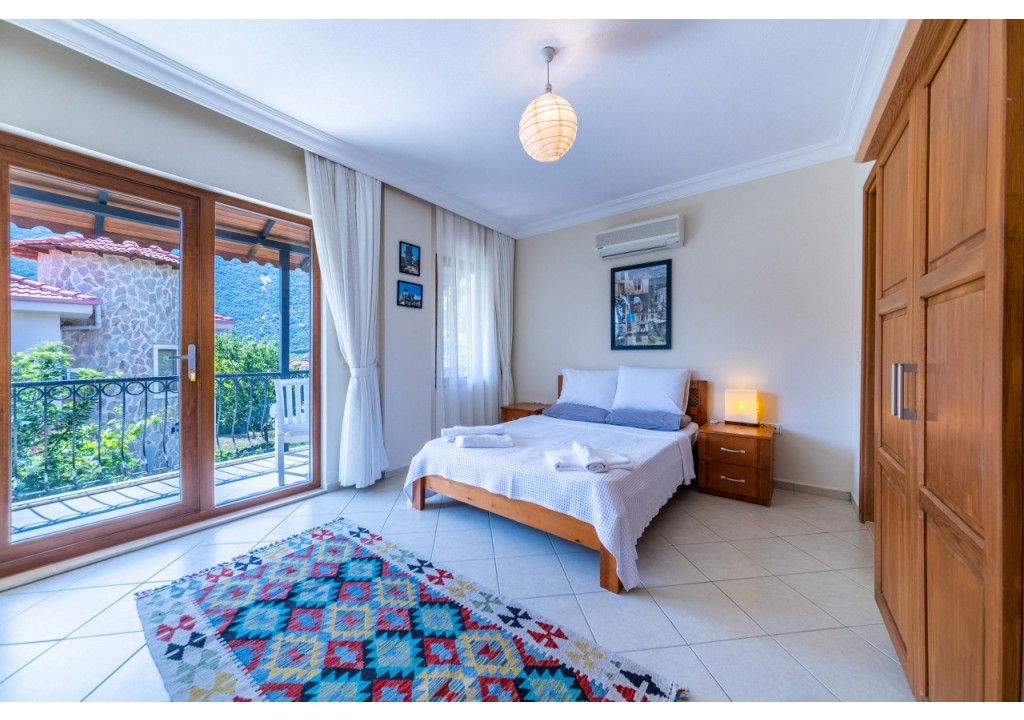 Kalkan’ın Bezirgan mevkisinde konumlanan, 3 yatak odalı ve doğa ile iç içe olan villamız, havuz bölgesi dışarıdan görünmeyecek şekilde tasarlanmıştır. Muhafazakâr aileler ve balayı çiftleri için en uygun seçeneklerden biridir.