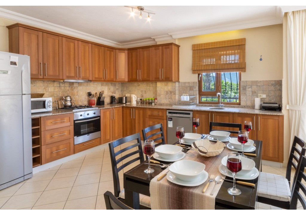 Detayları; Buzdolabı, Bulaşık makinesi, Fırın 4’lü Ocak (ankastre), Mikrodalga fırın, Elektrikli su ısıtıcı, 6 kişilik yemek takımı, Tava, Tencereler, Çatal bıçak vb.