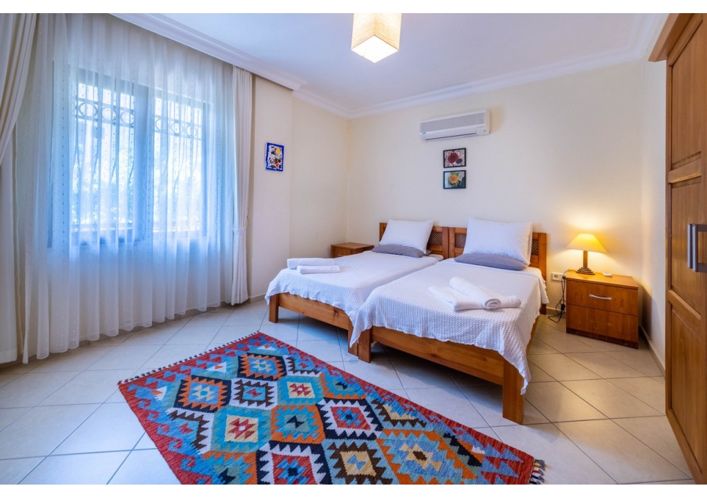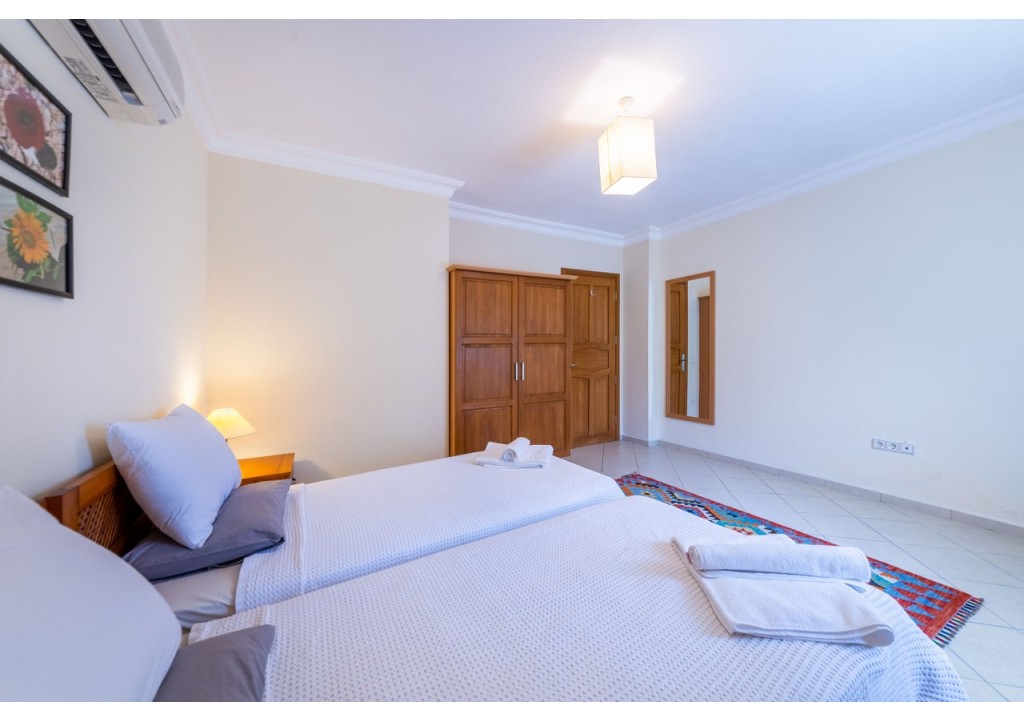 Detayları; İki adet tek kişilik yatak, makyaj masası, komidin, klima, elbise dolabı, banyo ve tuvalet bulunmaktadır.