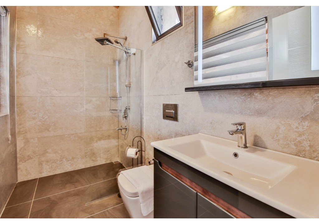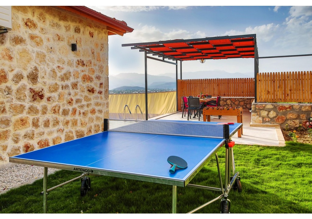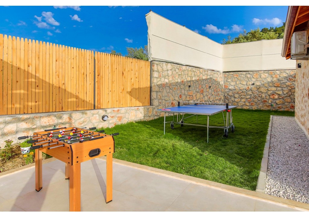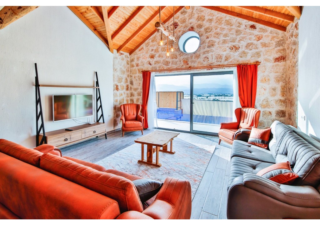 Detayları; Oturma grubu, Uydu TV (LCD), Klima, 6 kişilik yemek masası, Havuz terasına çıkış,