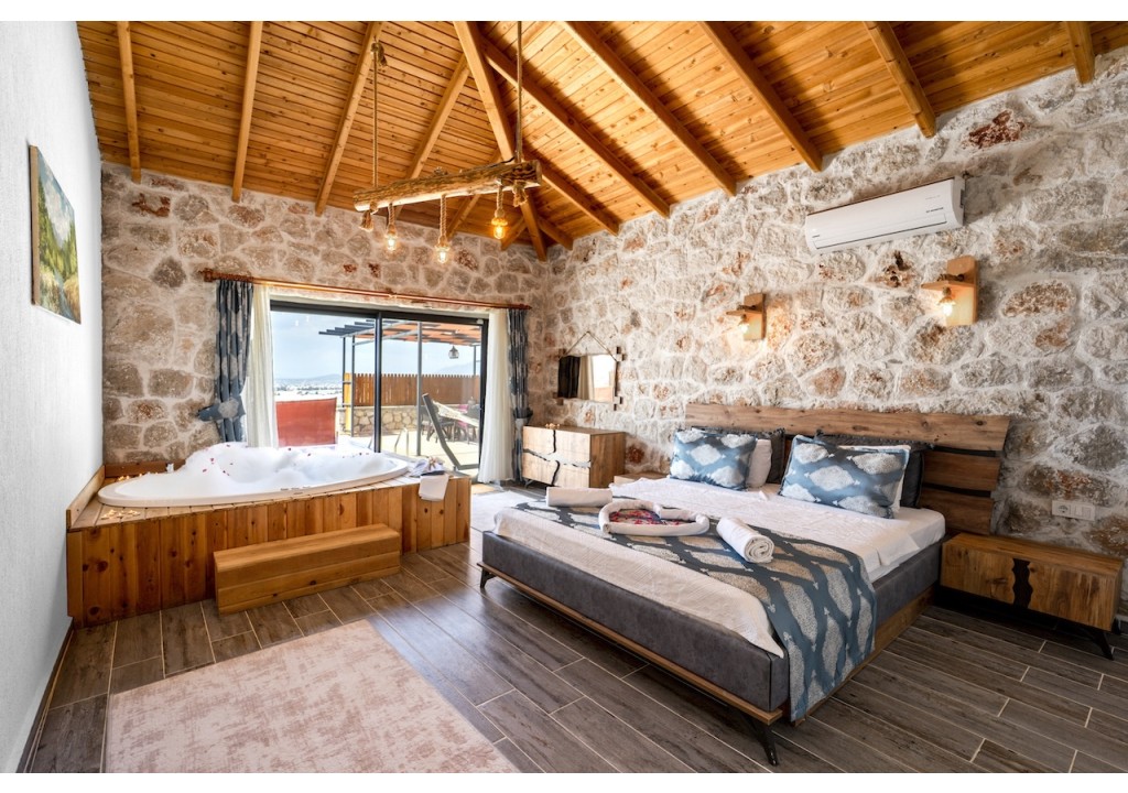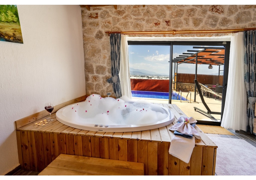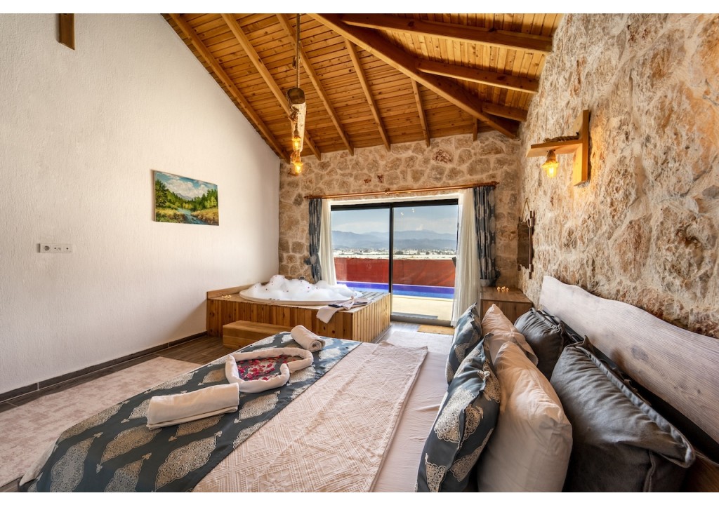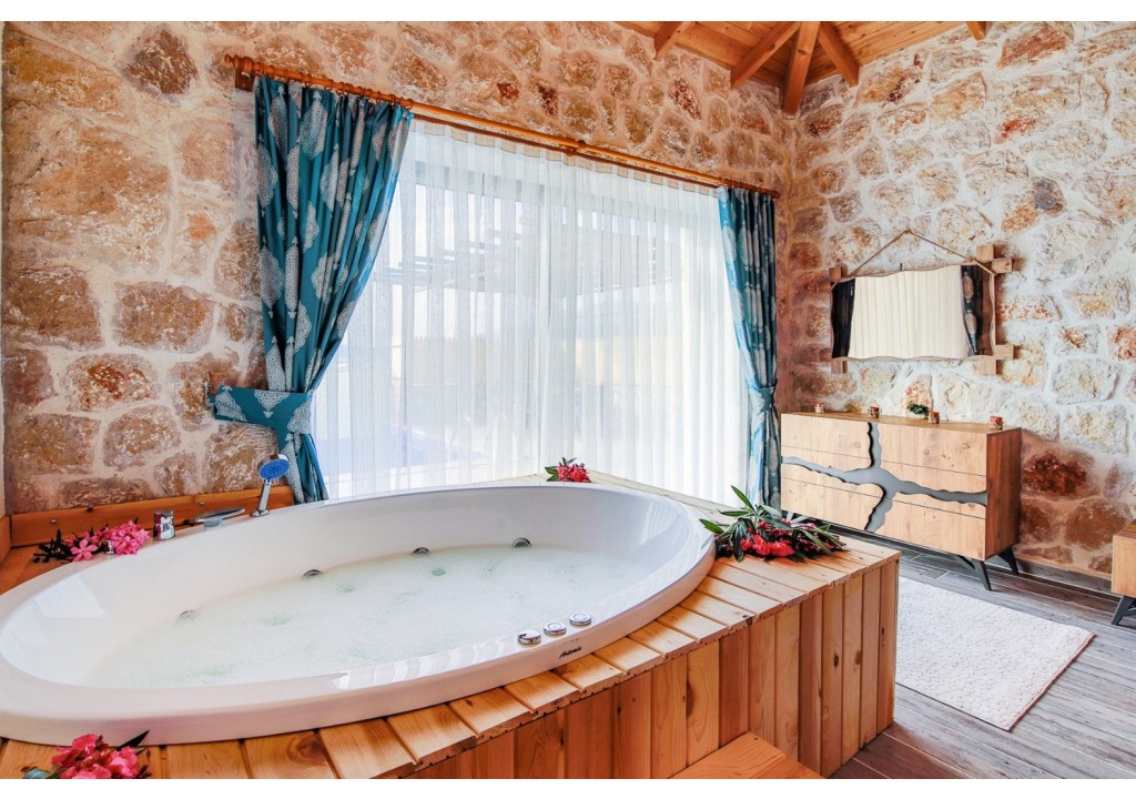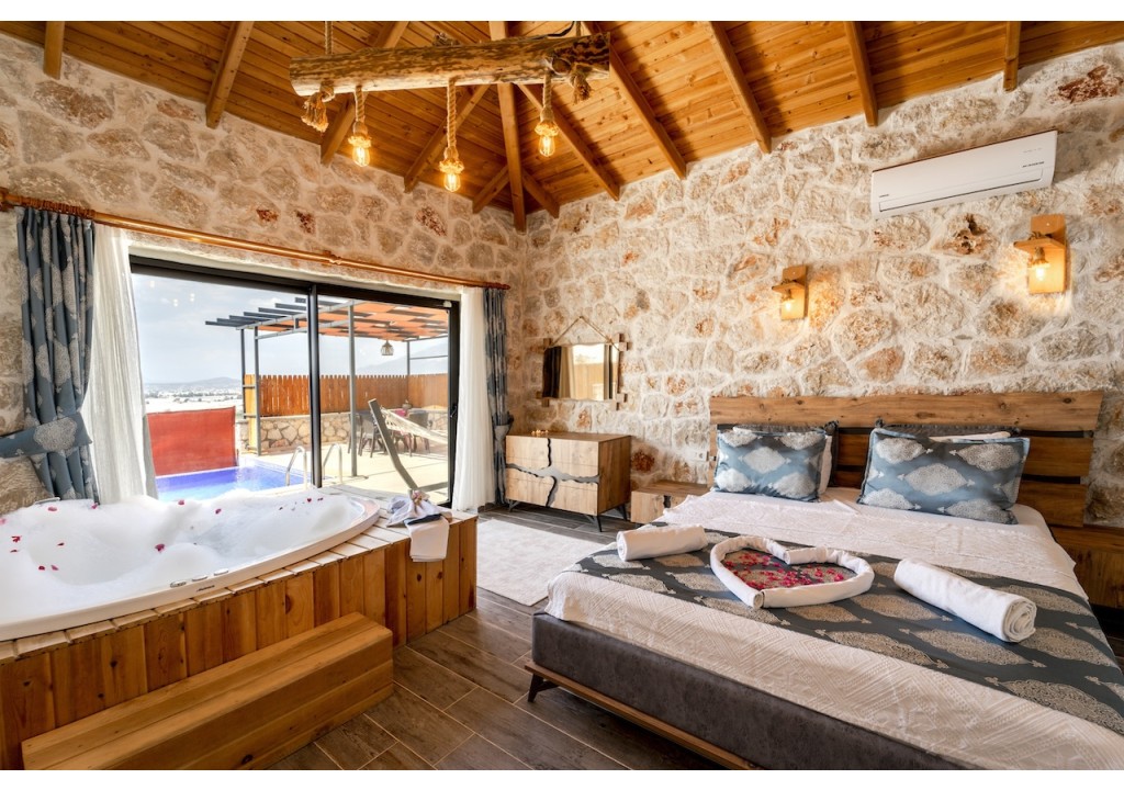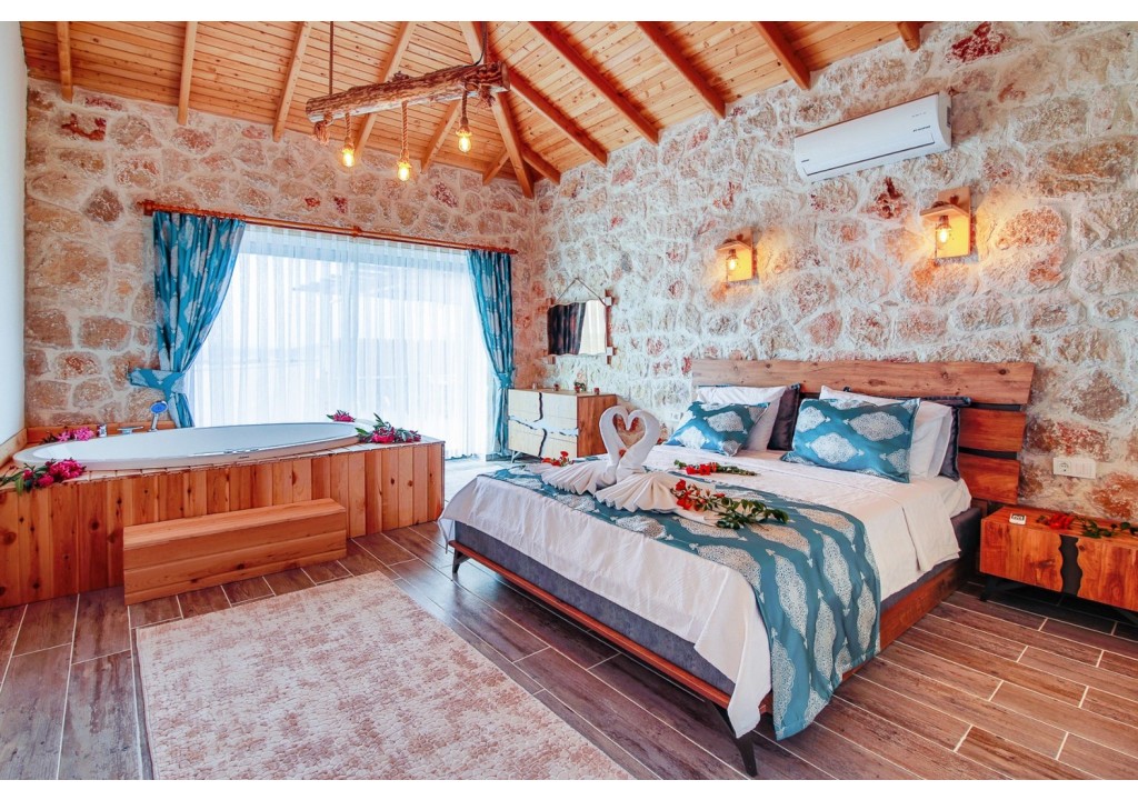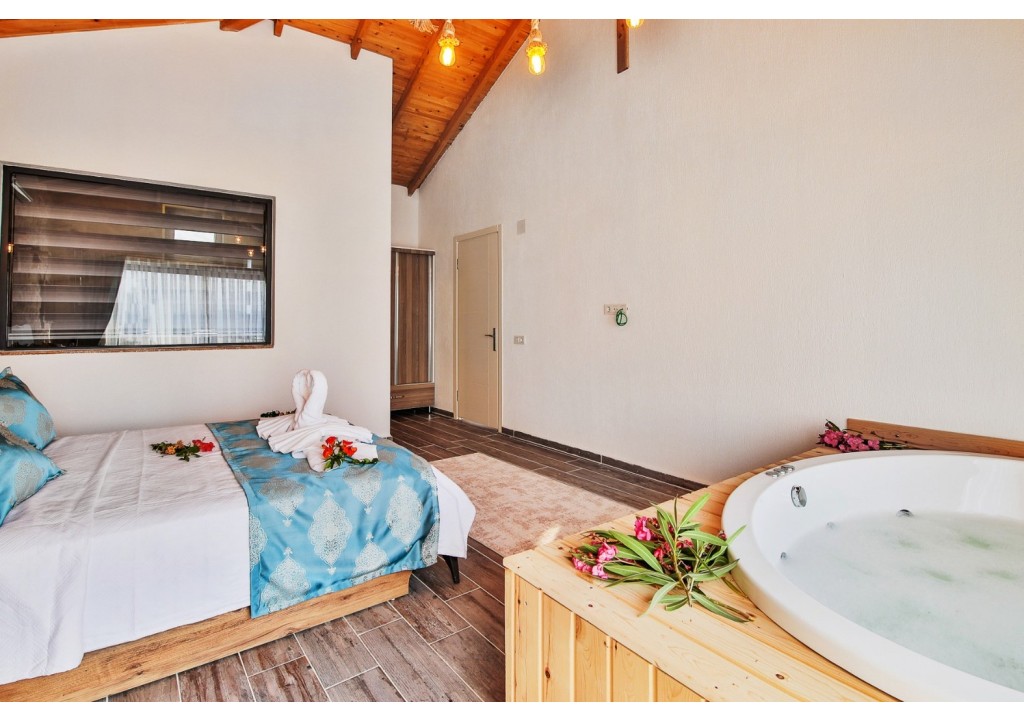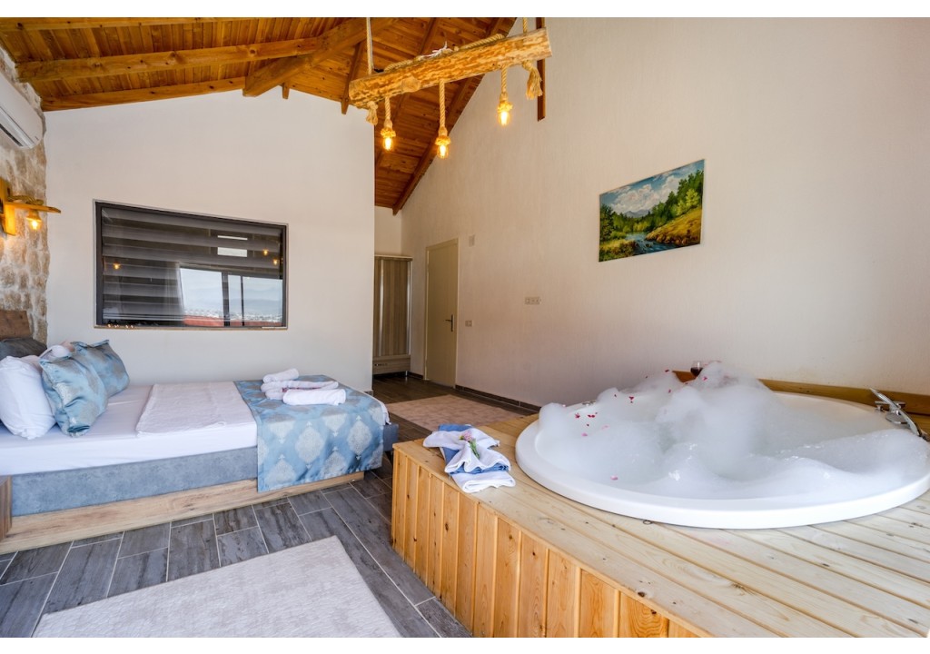 Detayları; Çift kişilik yatak, makyaj masası, komidin, klima, elbise dolabı, jakuzi, banyo ve tuvalet bulunmaktadır.