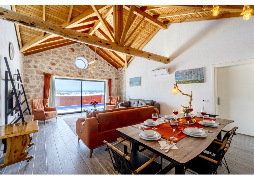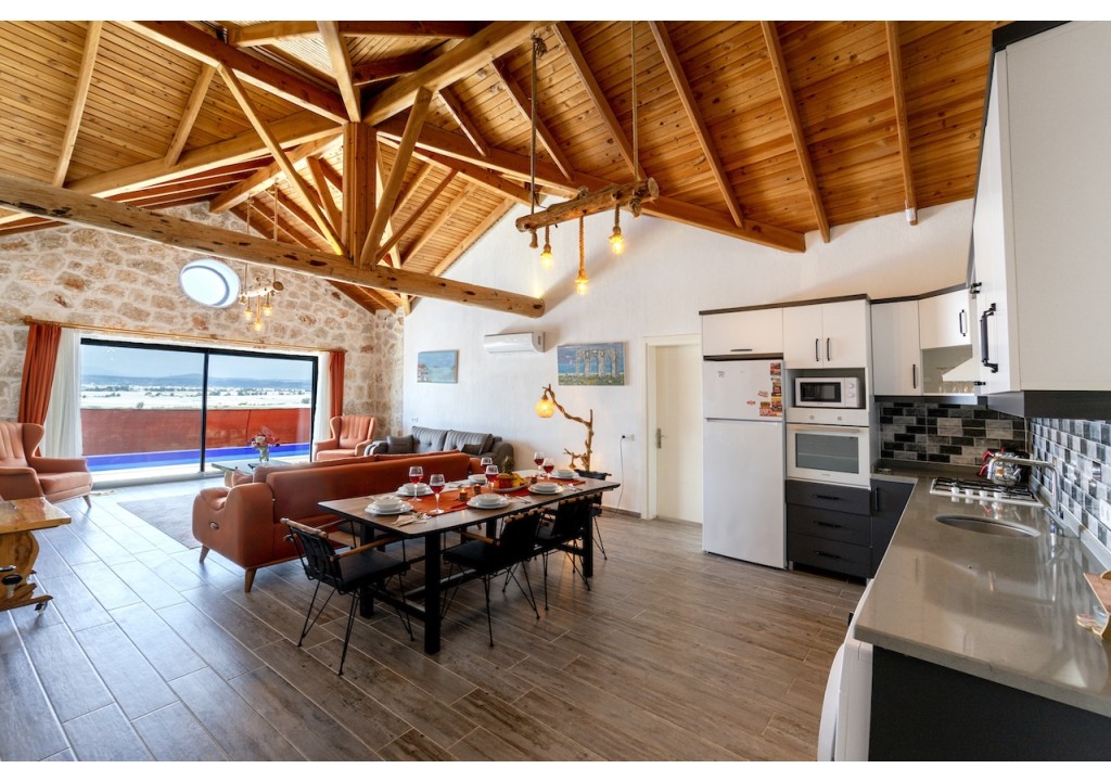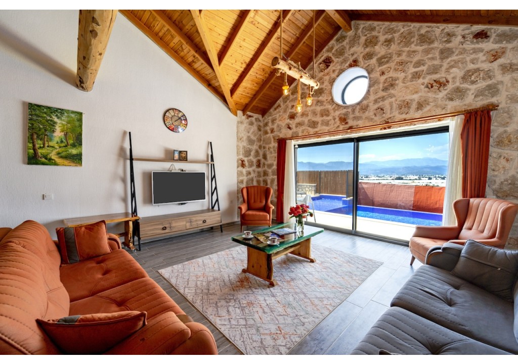 Detayları; Oturma grubu, uydu TV, klima, yemek masası ve havuz terasına çıkış bulunmaktadır.