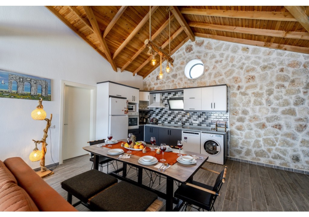 Detayları; Buzdolabı, bulaşık makinesi, fırın, 4’lü ocak, mikrodalga fırın, elektrikli su ısıtıcı, yemek takımı, tava, tencereler, çatal bıçak ve mutfak ekipmanları bulunmaktadır.