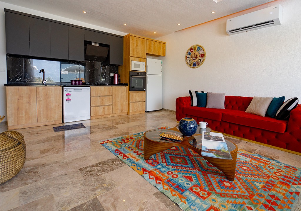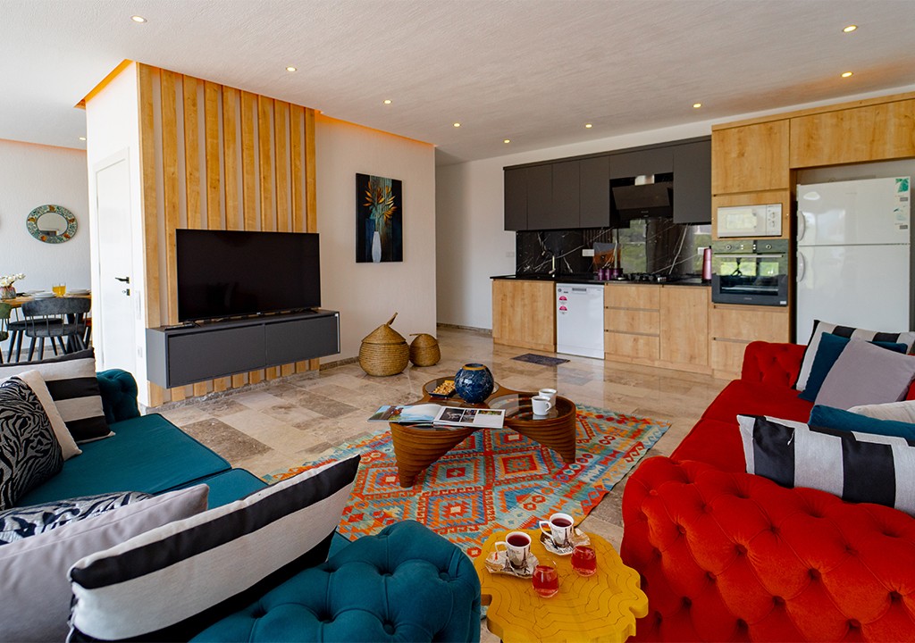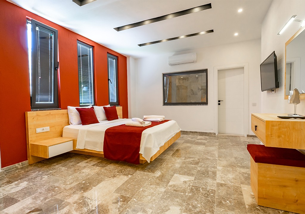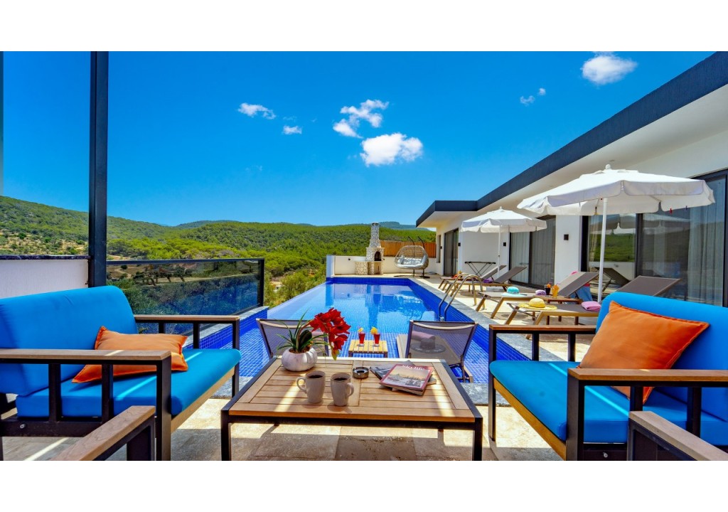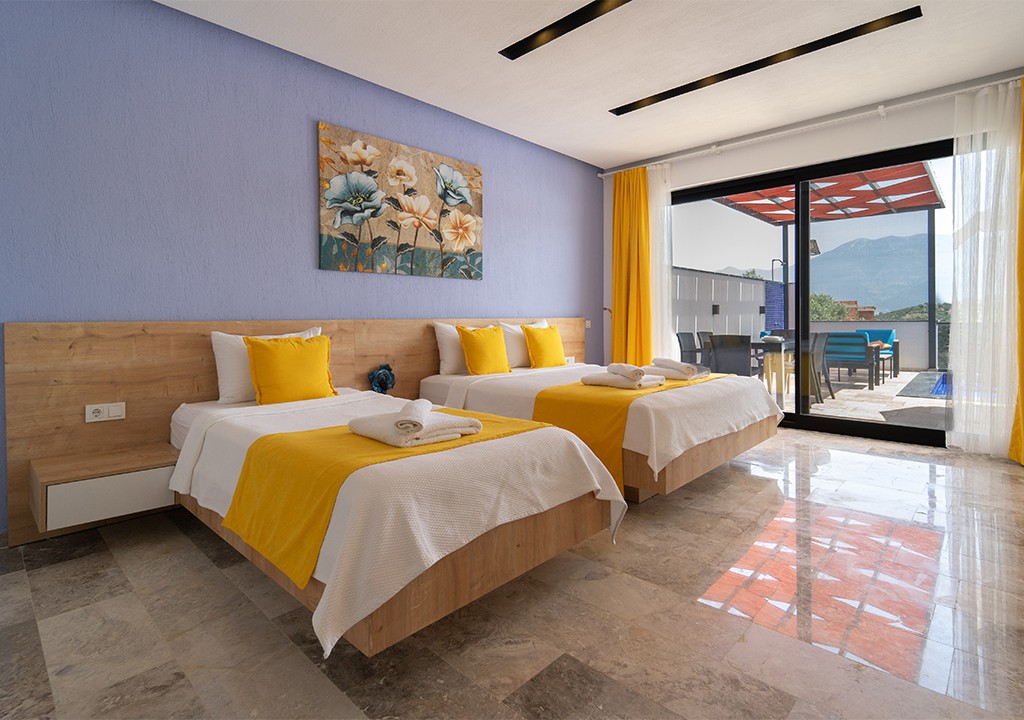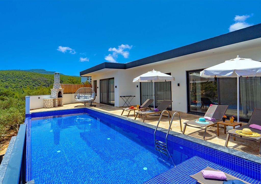 Kalkan’ın Patara mevkiinde yer alan Villa Glory 2, 3 yatak odasıyla 7 kişiye kadar konaklama kapasitesine sahiptir. Dışarıdan görünmeyen korunaklı havuz alanı, muhafazakâr aileler ve arkadaş grupları için ideal bir konaklama imkânı sunar.