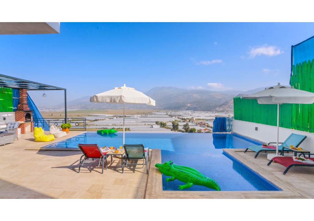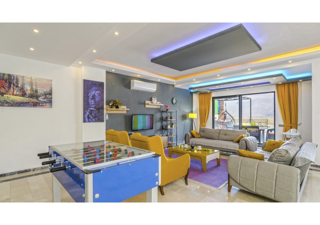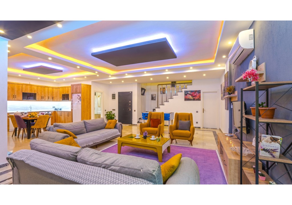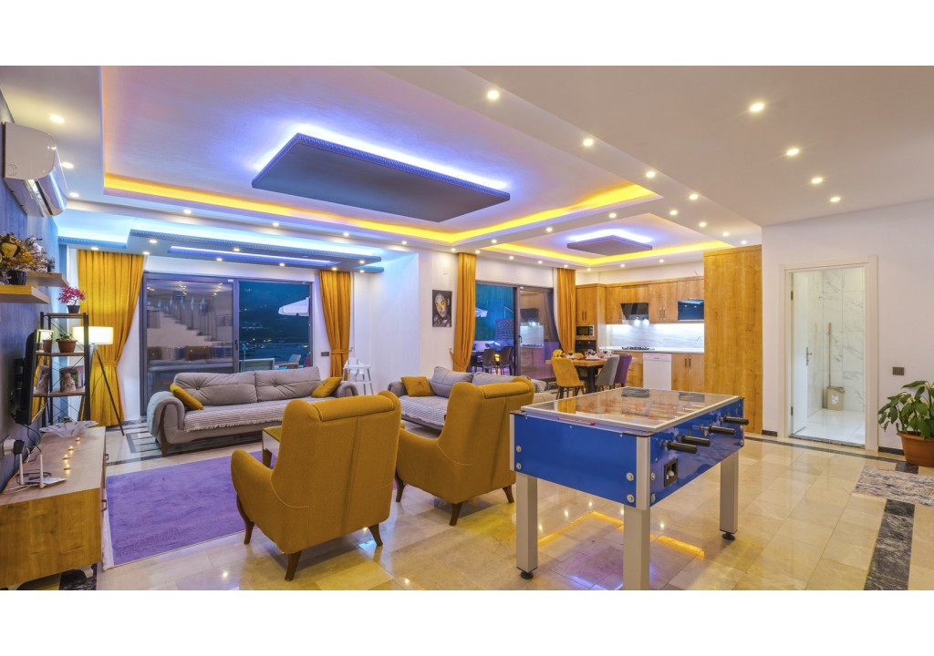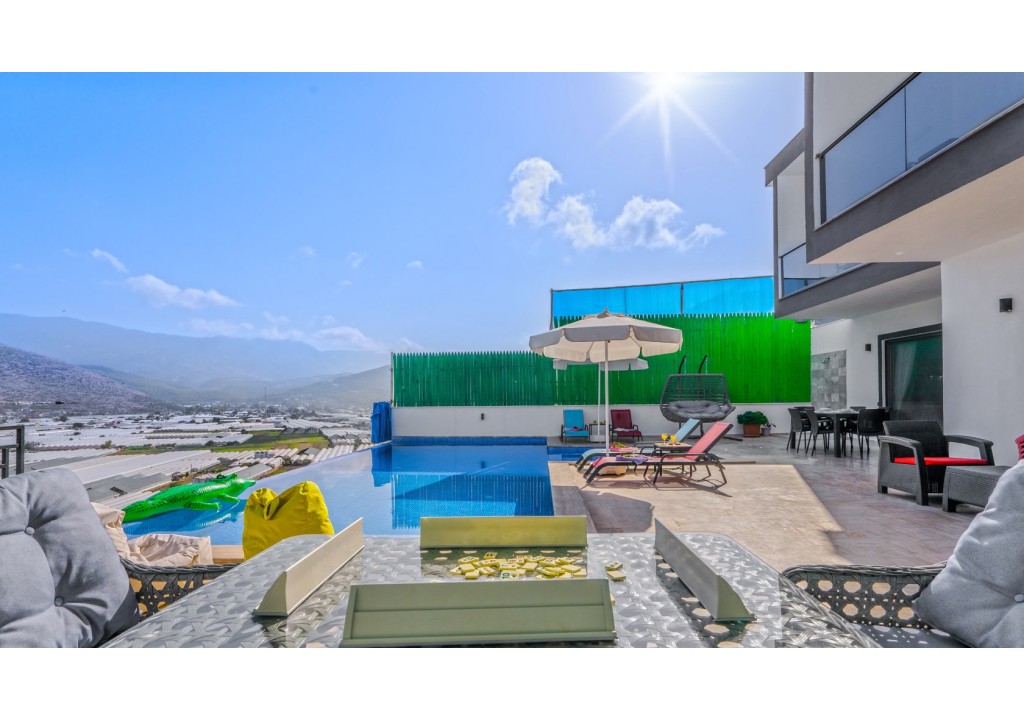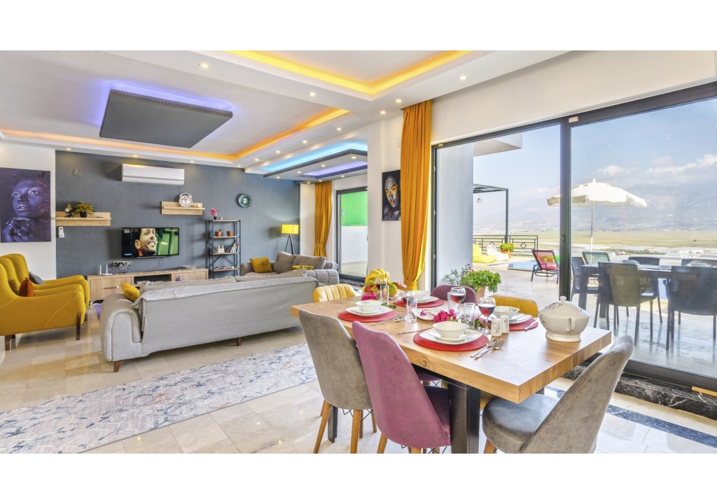 Detayları; Oturma grubu, Uydu TV (LCD), Klima, 4 kişilik yemek masası, Havuz terasına çıkış,