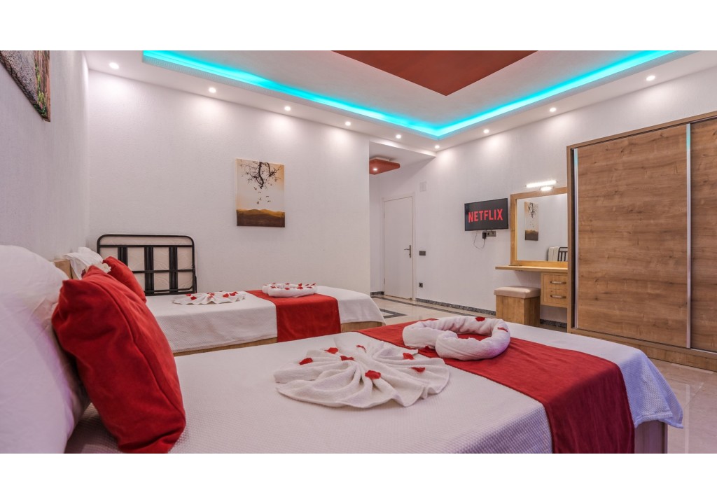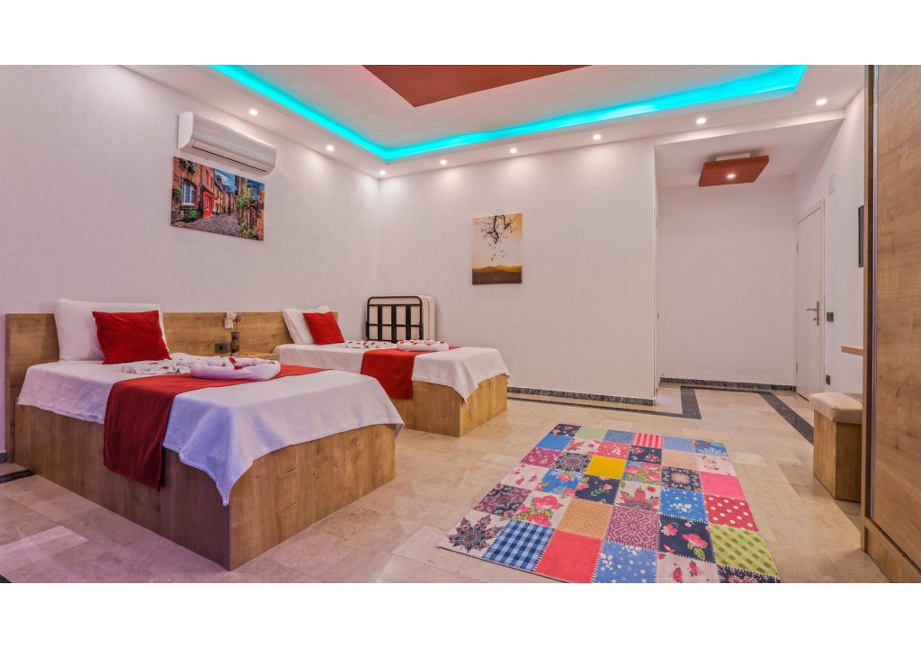 Detayları; İki adet tek kişilik yatak, makyaj masası, komodin, klima, elbise dolabı, banyo ve tuvalet bulunmaktadır.
