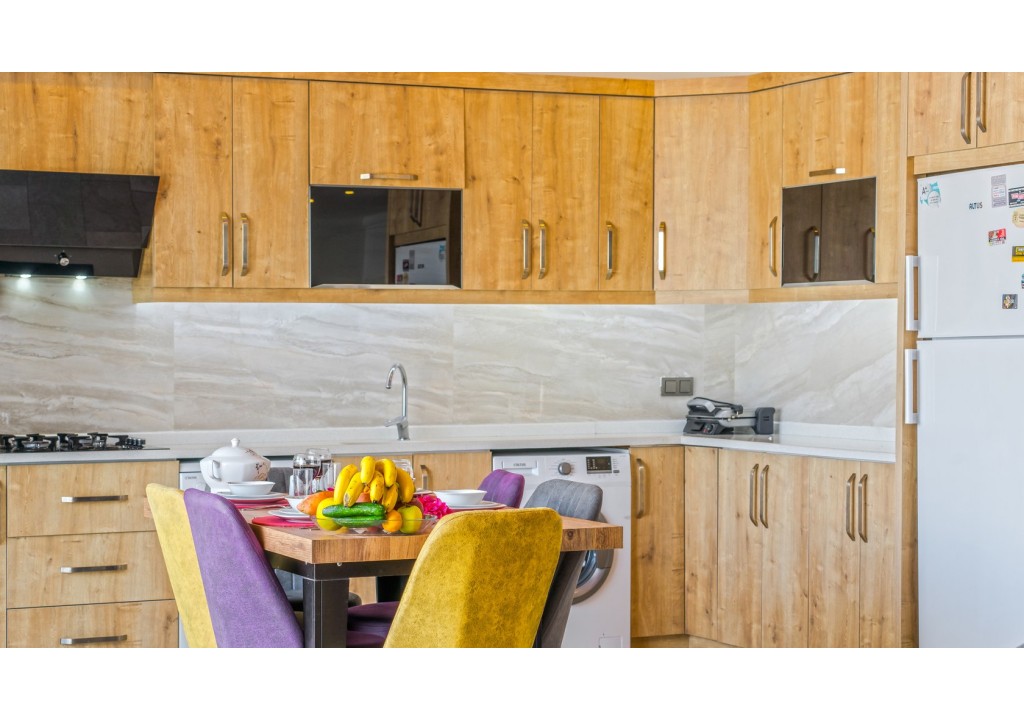 Detayları; Buz dolabı, Bulaşık makinesi, Fırın 4’lü Ocak (ankastre), Mikrodalga fırın, Elektrikli su ısıtıcı, su sebili,4 kişilik yemek takımı, Tava, Tencereler, Çatal bıçak vb.