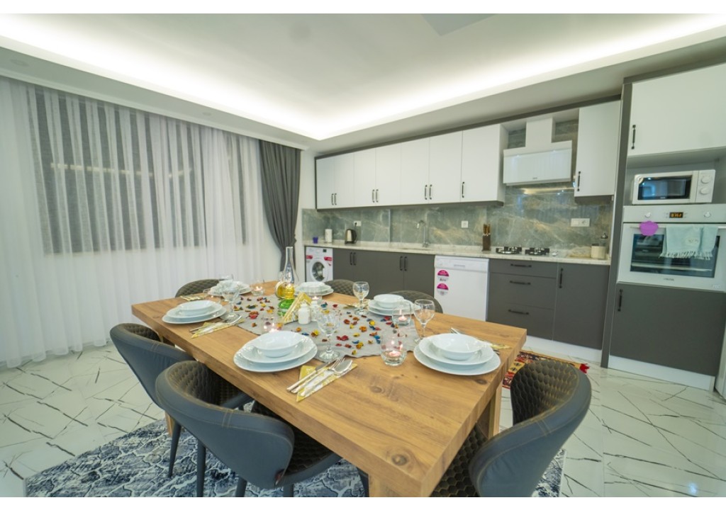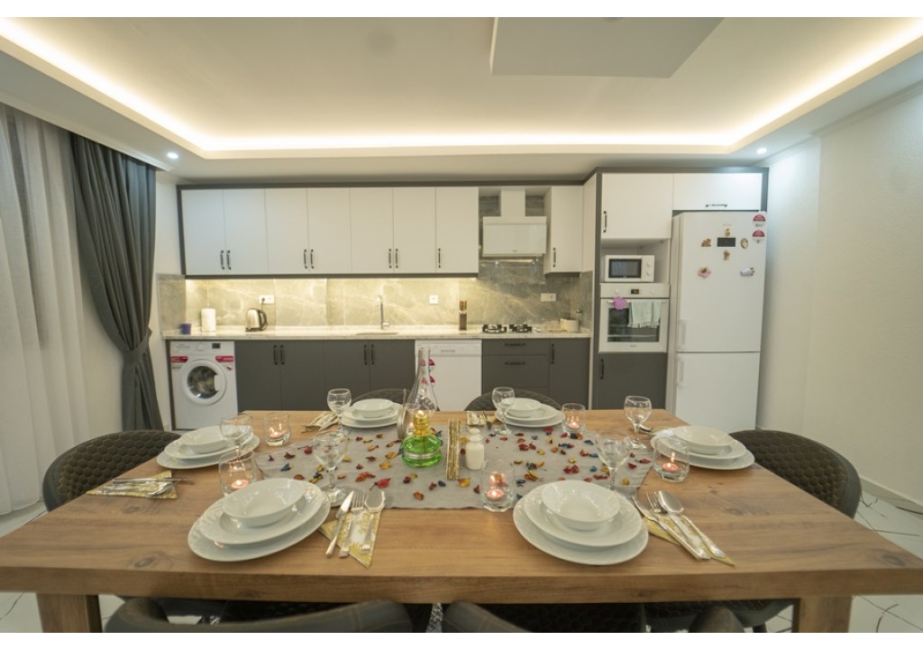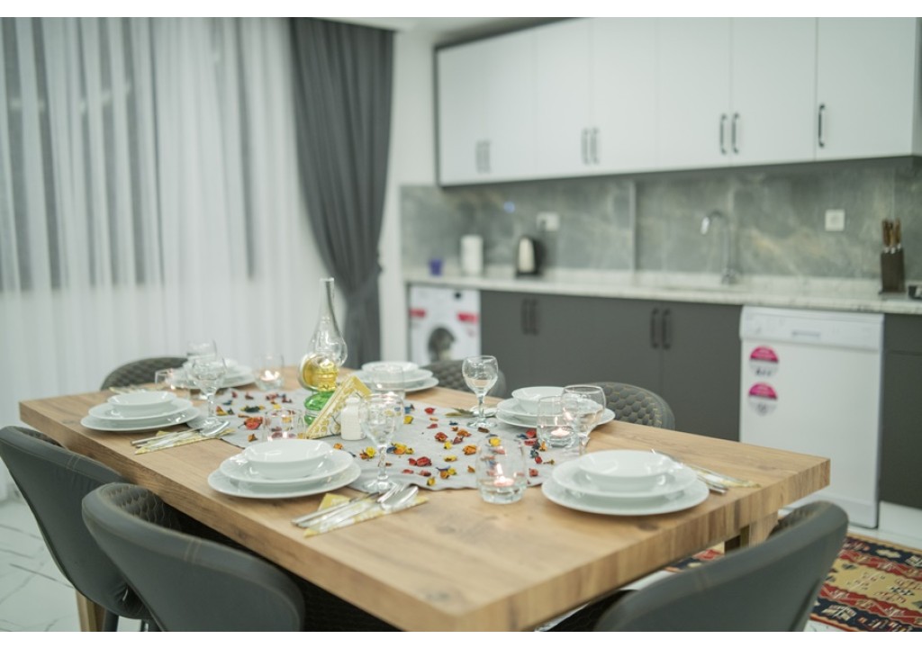 Detayları; Buzdolabı, Bulaşık makinesi, Fırın 4’lü Ocak (ankastre), Mikrodalga fırın, Elektrikli su ısıtıcı,6 kişilik yemek takımı, Tava, Tencereler, Çatal bıçak vb.