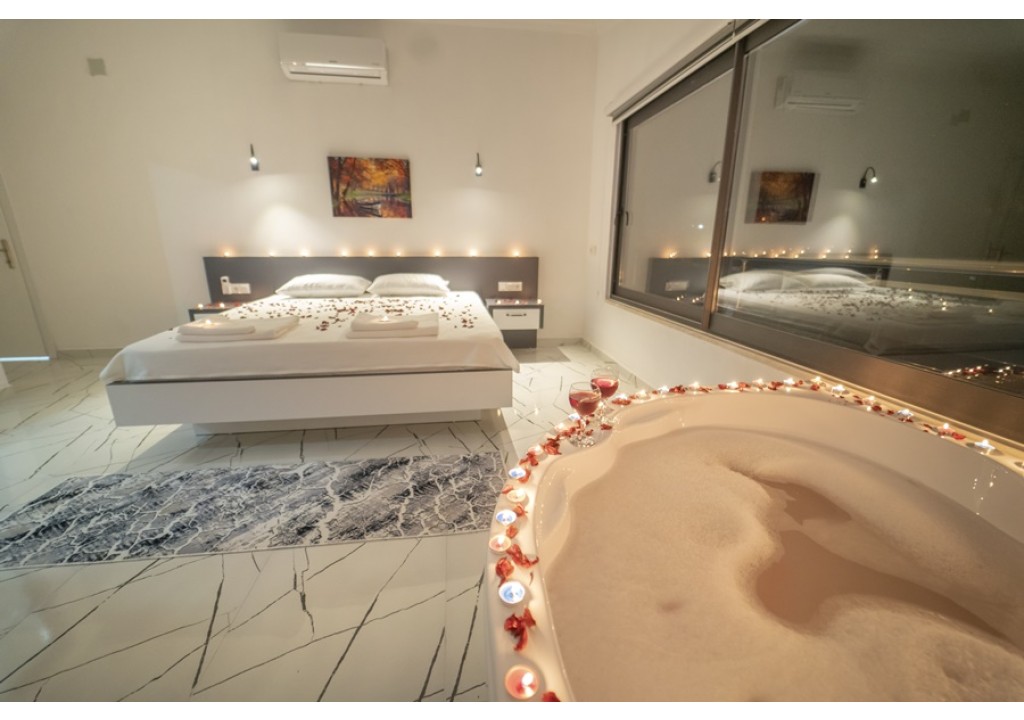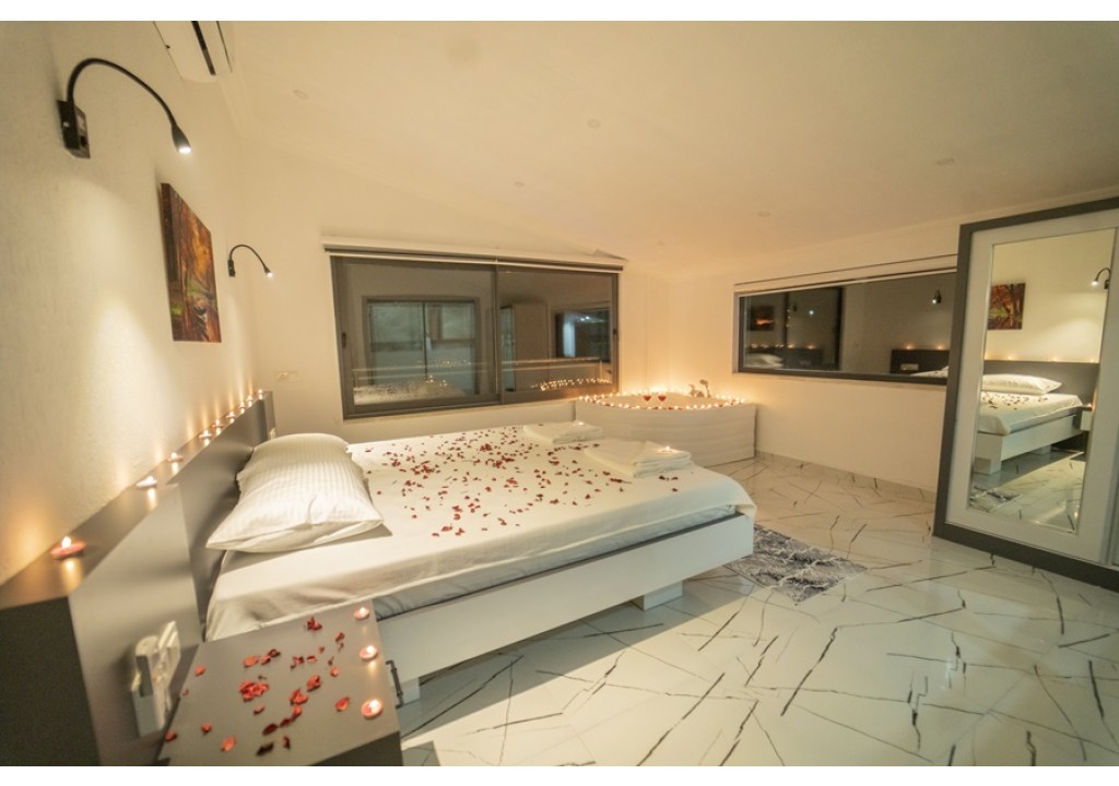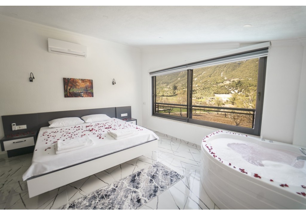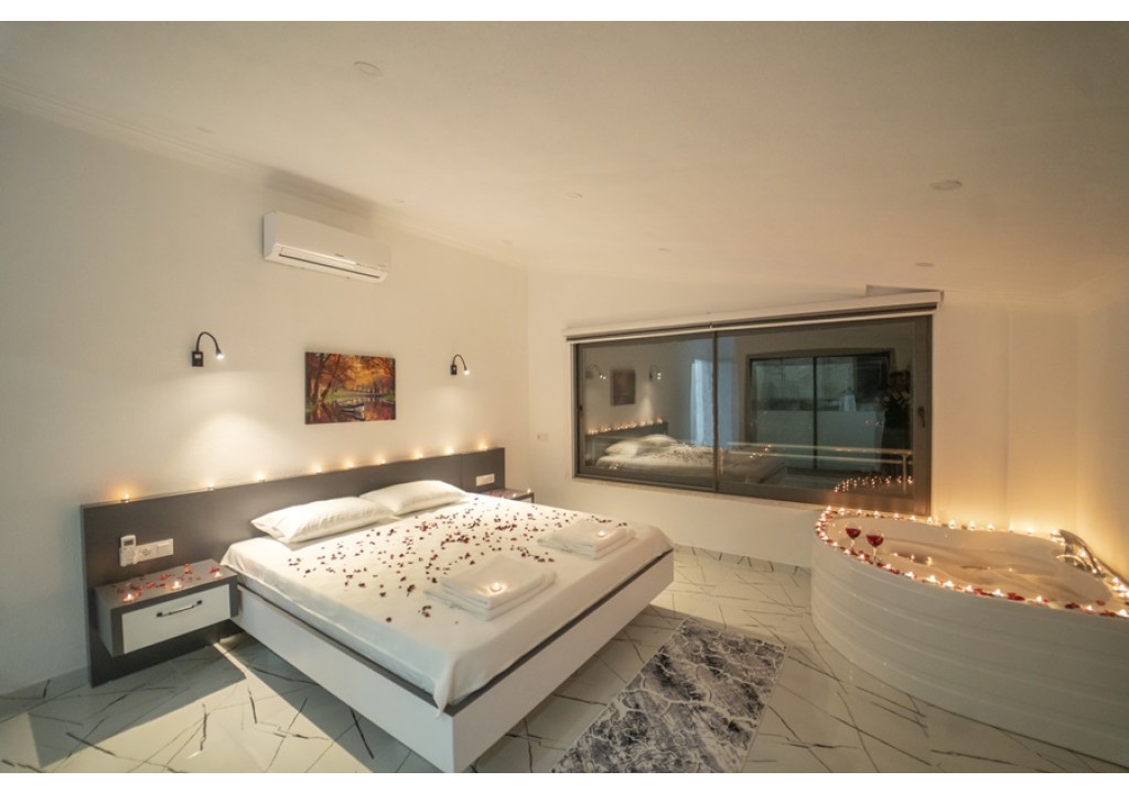 Detayları; Çift kişilik yatak, komodin, klima, elbise dolabı, jakuzi, banyo ve tuvalet bulunmaktadır.