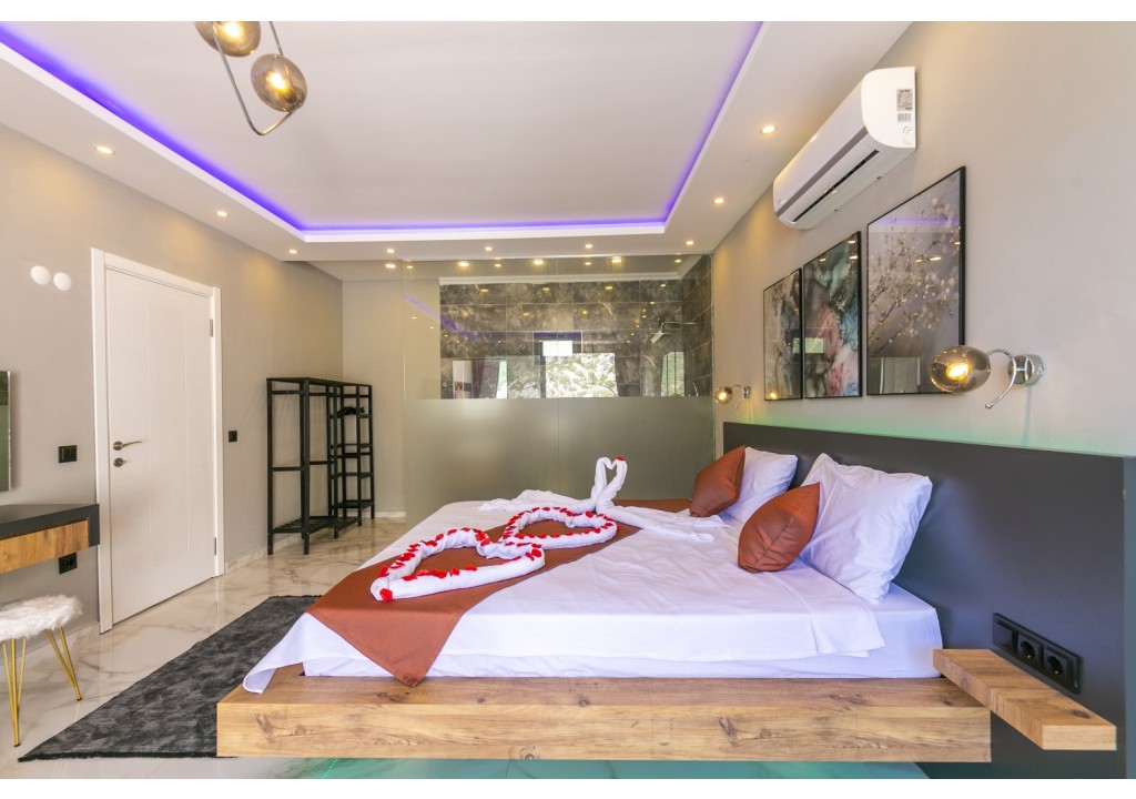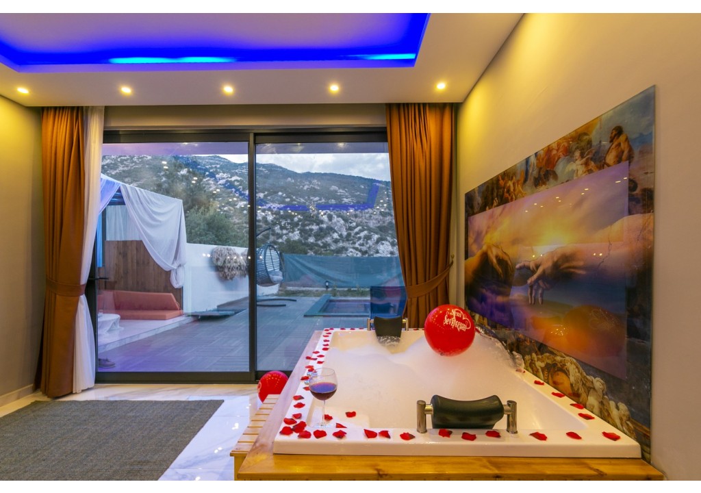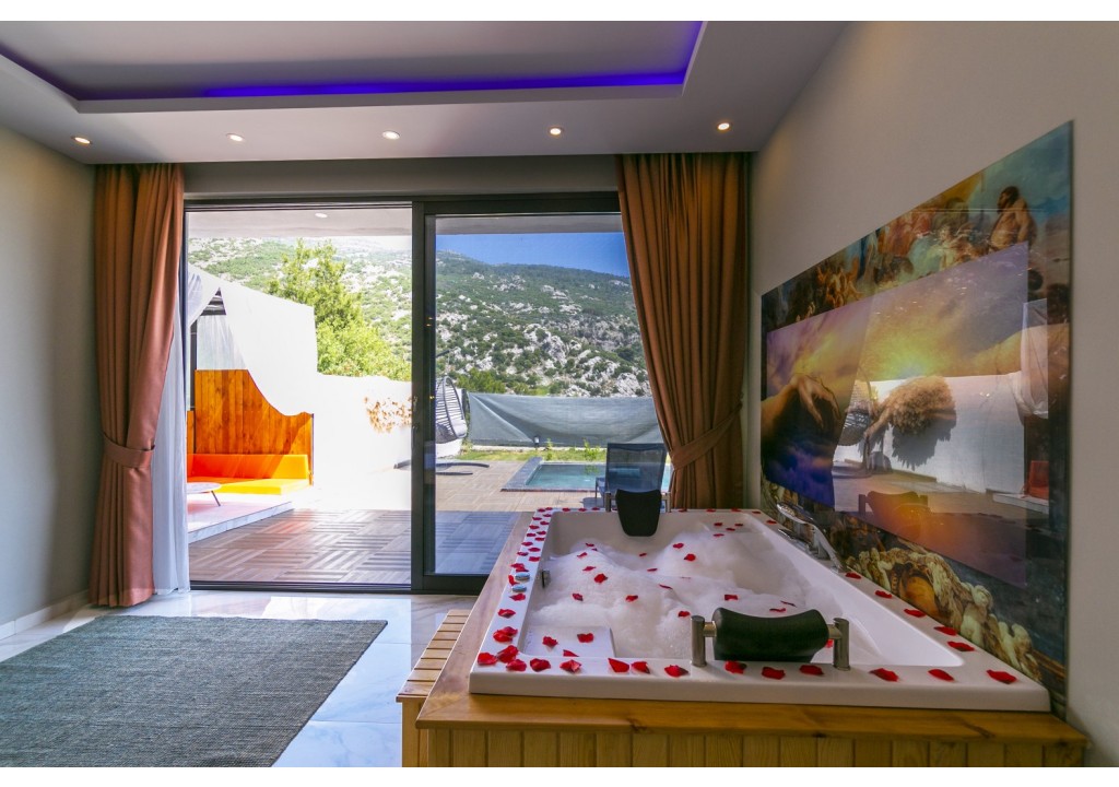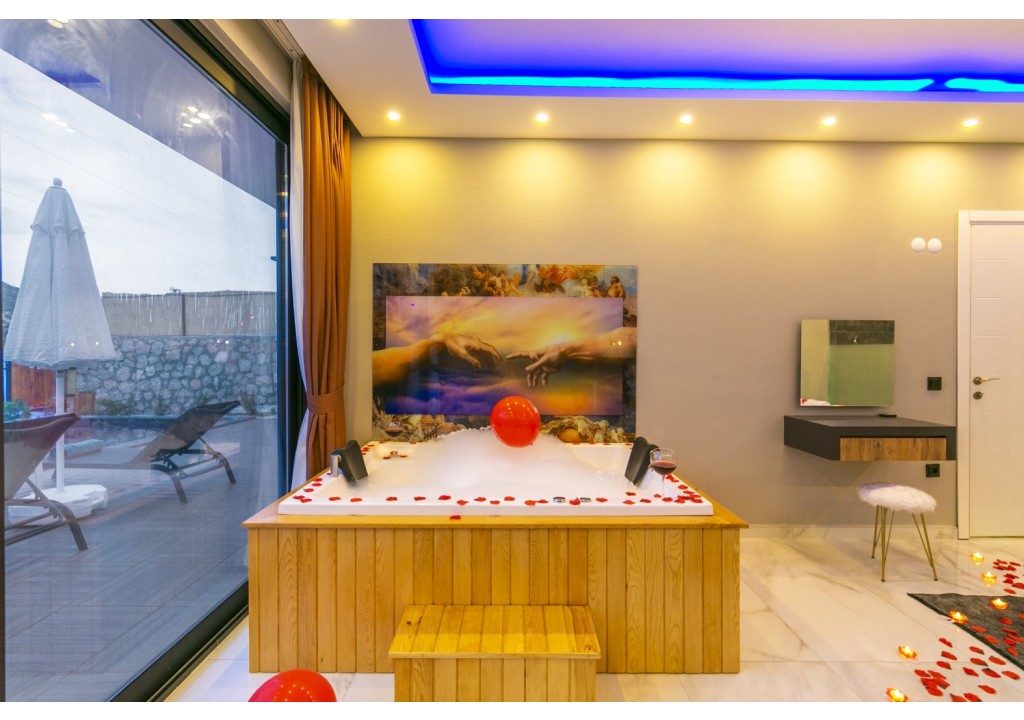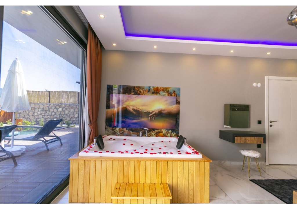 Detayları; Çift kişilik yatak, makyaj masası, komidin, klima, elbise dolabı, jakuzi, banyo ve tuvalet bulunmaktadır.