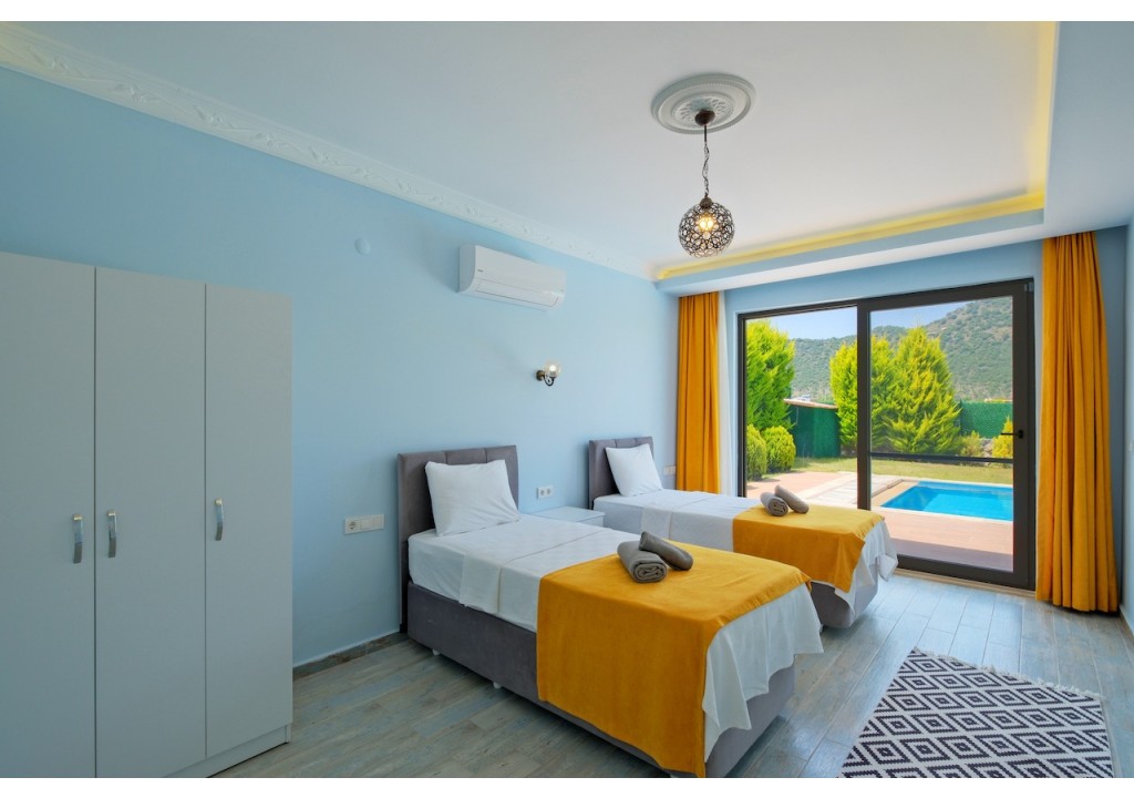 Detayları; İki adet tek kişilik yatak, makyaj masası, komodin, klima, elbise dolabı, banyo ve tuvalet bulunmaktadır.