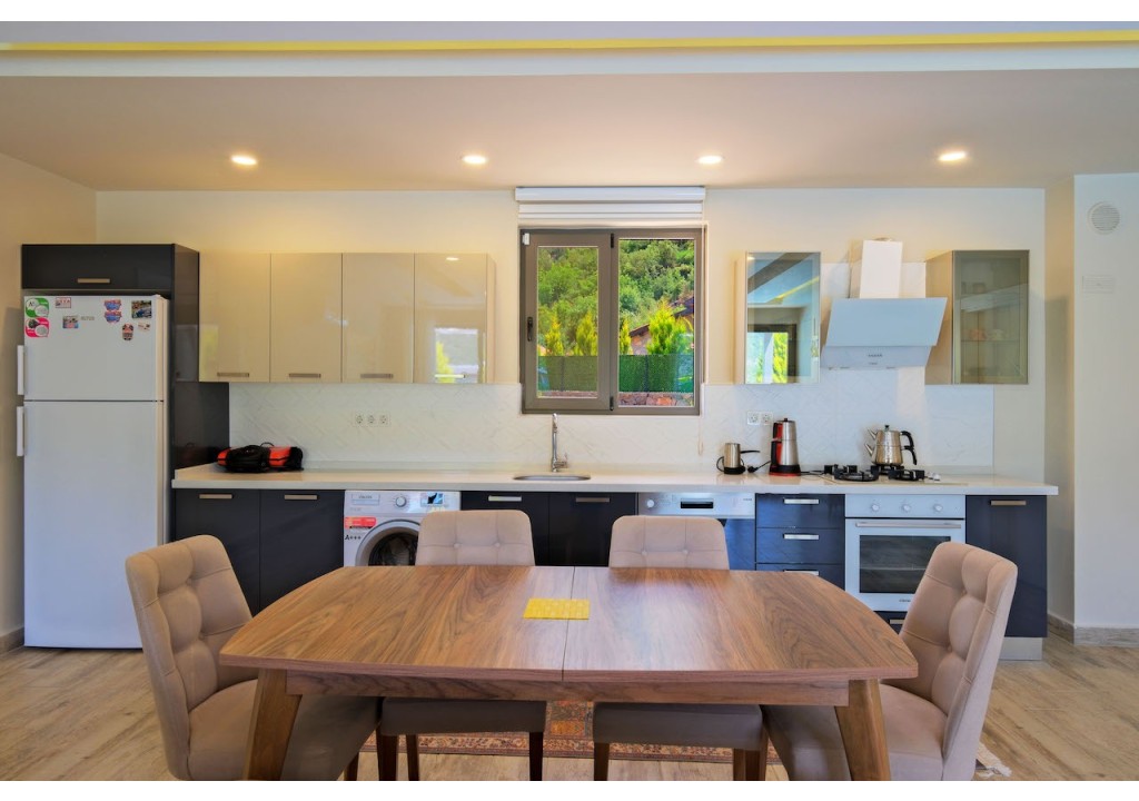 Detayları; Buz dolabı, Bulaşık makinesi, Fırın 4’lü Ocak (ankastre), Mikrodalga fırın, Elektrikli su ısıtıcı, 8 kişilik yemek takımı, Tava, Tencereler, Çatal bıçak vb.