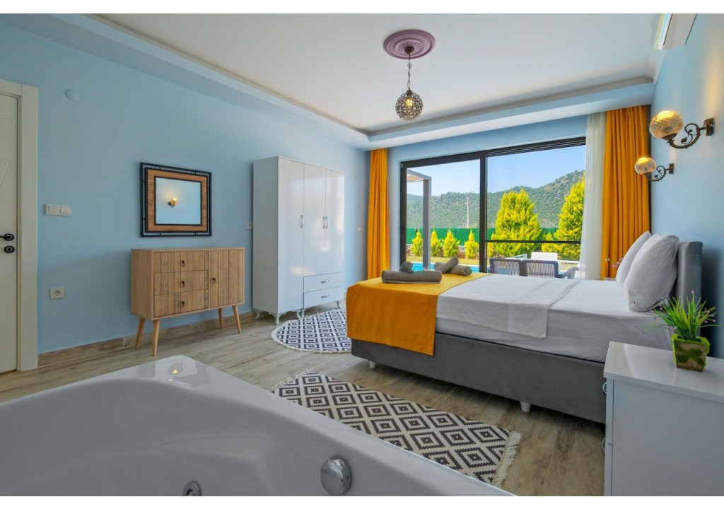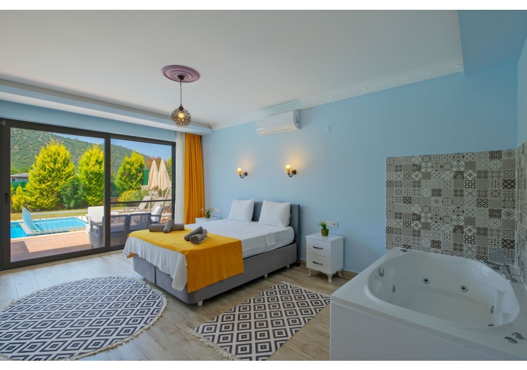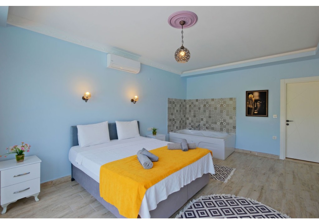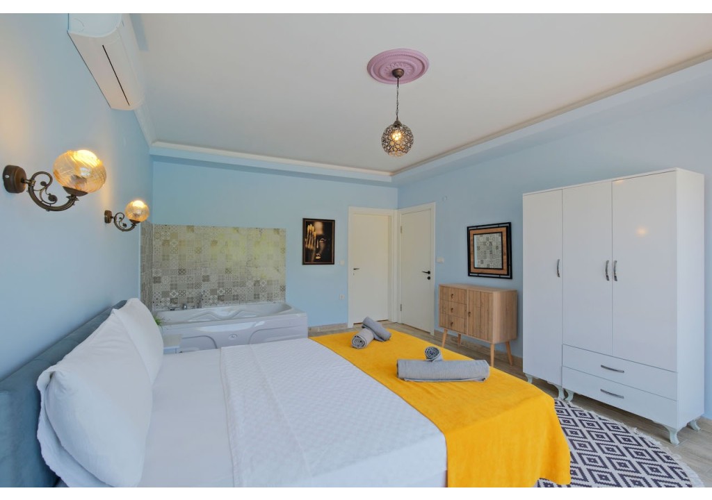 Detayları; Çift kişilik yatak, makyaj masası, komodin, klima, elbise dolabı, jakuzi, banyo ve tuvalet bulunmaktadır.