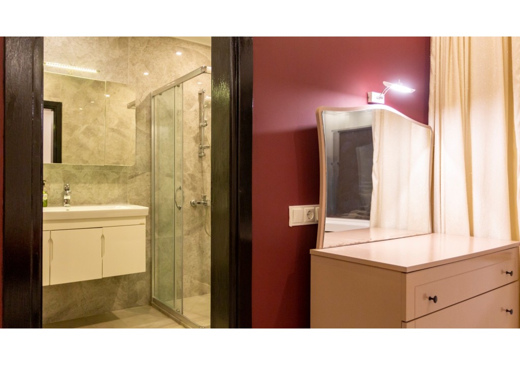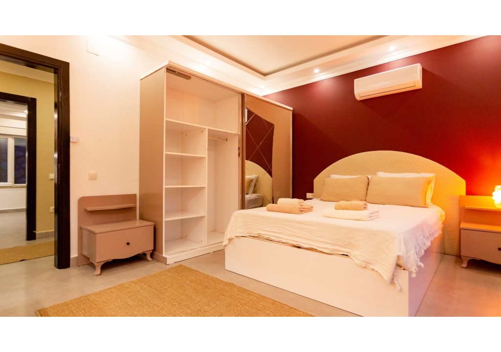 Detayları; Çift kişilik yatak, makyaj masası, komidin, klima, elbise dolabı, banyo ve tuvalet bulunmaktadır.