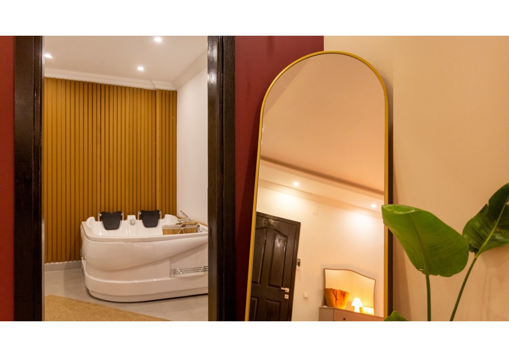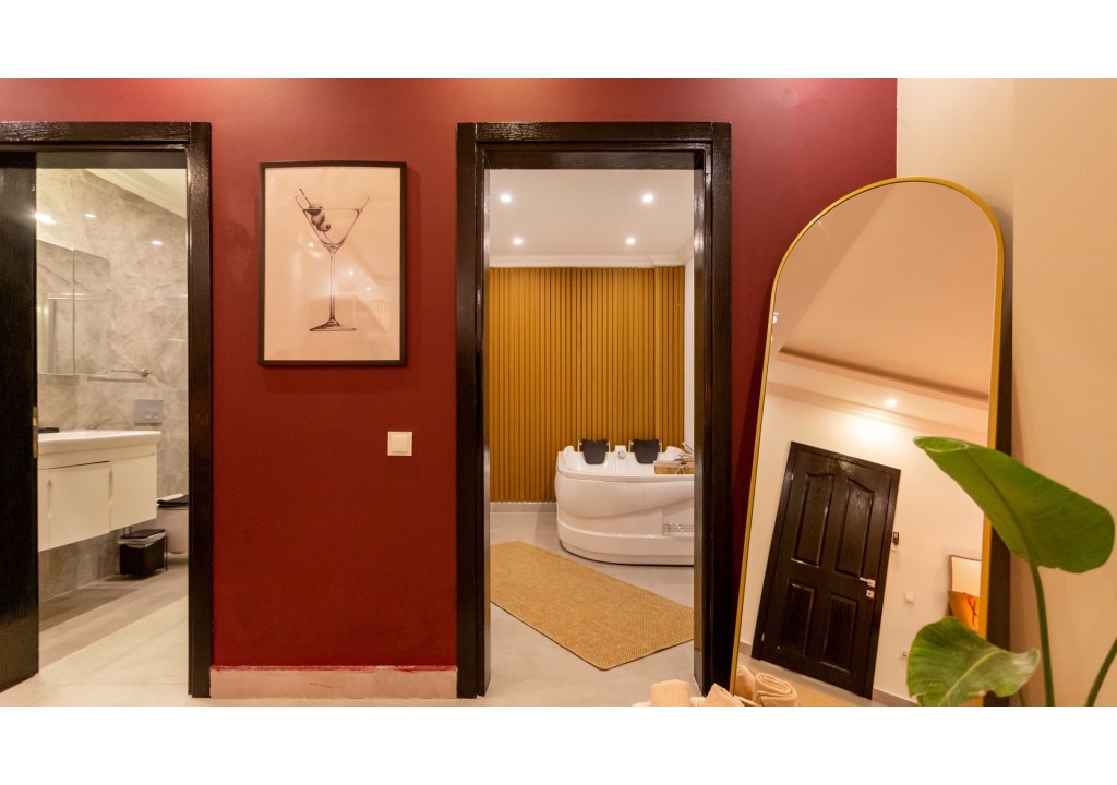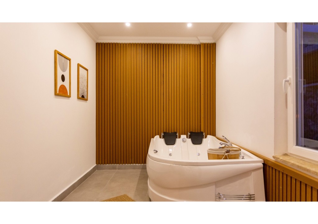 Detayları; Çift kişilik yatak, makyaj masası, komidin, klima, elbise dolabı, jakuzi banyo ve tuvalet bulunmaktadır.