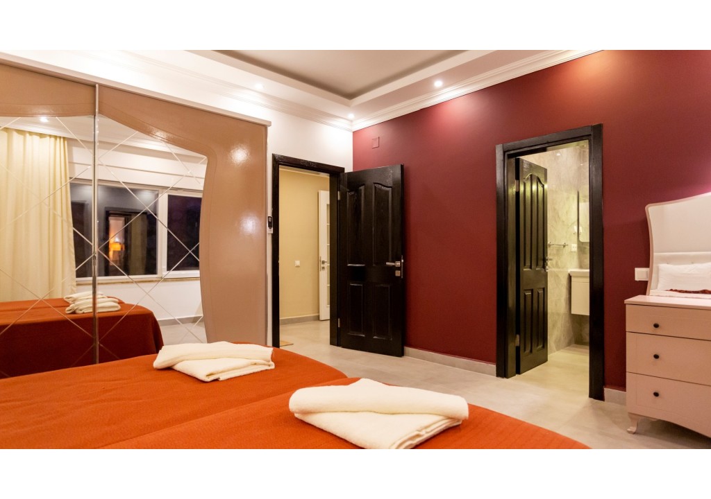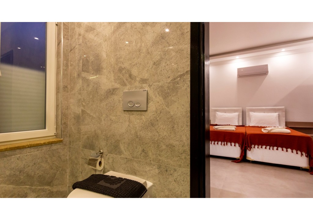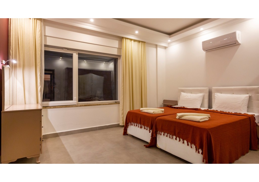 Detayları; İki adet tek kişilik yatak, makyaj masası, komidin, klima, elbise dolabı, banyo ve tuvalet bulunmaktadır.