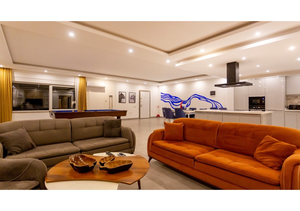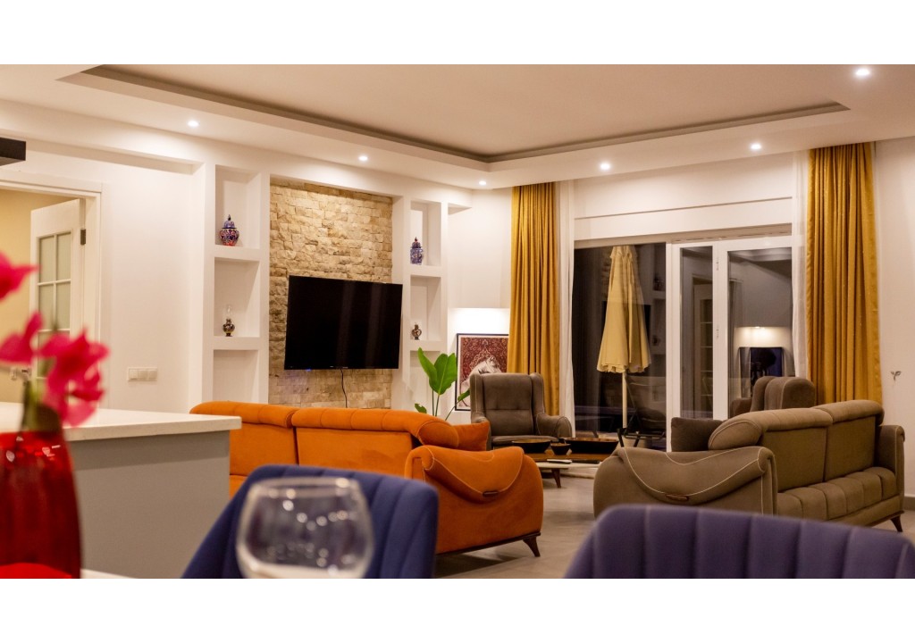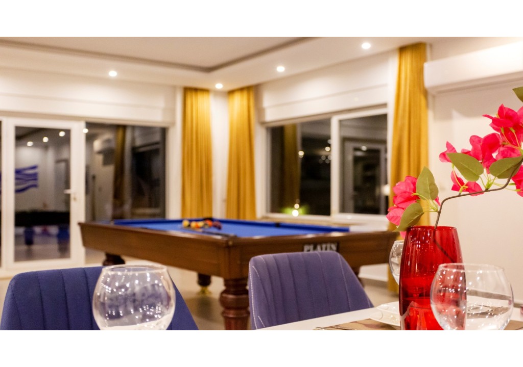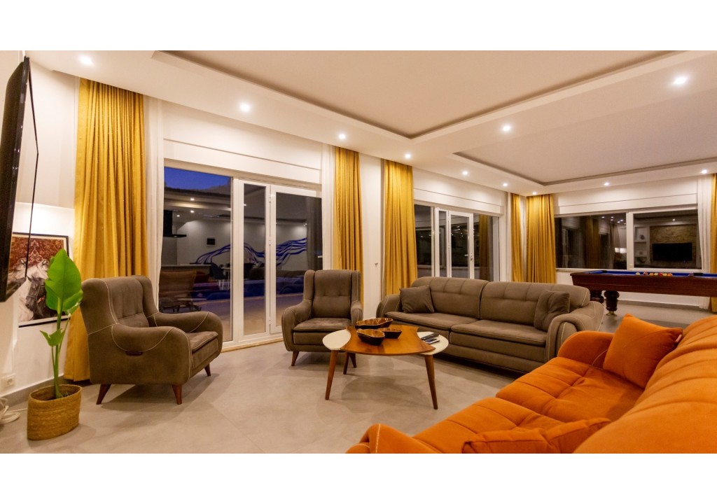 Detayları; Oturma grubu, uydu TV, klima, yemek masası ve havuz terasına çıkış bulunmaktadır.