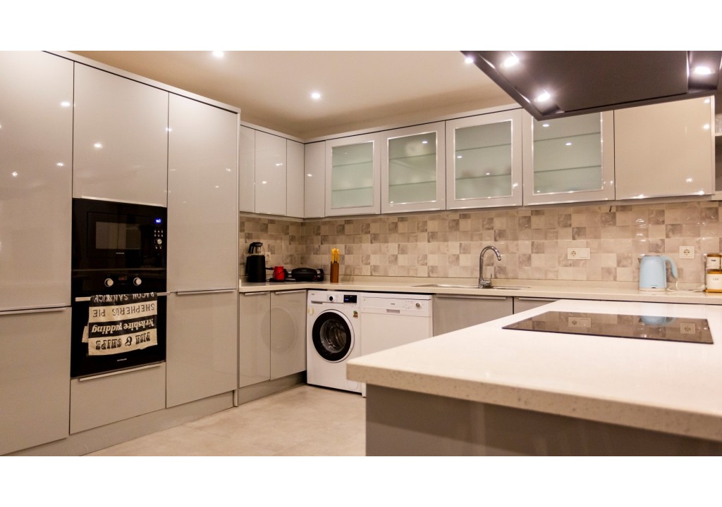 Detayları; Buzdolabı, bulaşık makinesi, fırın, 4’lü ocak, mikrodalga fırın, elektrikli su ısıtıcı, yemek takımı, tava, tencereler, çatal bıçak ve mutfak ekipmanları bulunmaktadır.